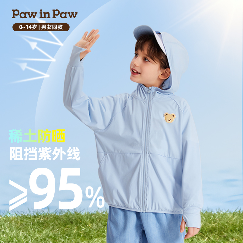 【防晒凉感速干】PawinPaw卡通小熊童装夏男女童连帽防晒衣