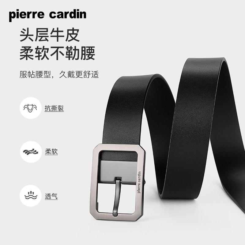 皮尔卡丹男士针扣皮带真皮商务休闲男腰带牛皮高档正品牛仔裤腰带