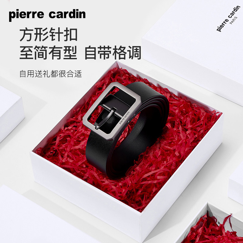 皮尔卡丹皮带男真皮腰带新款礼物商务男士正品本命年牛皮红裤带