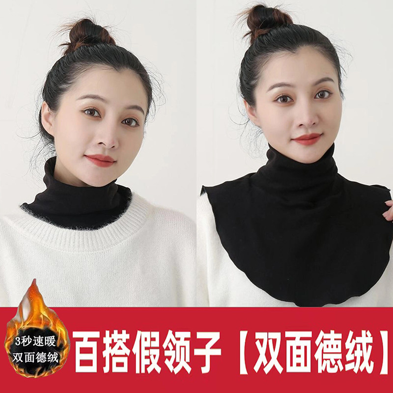 德绒假领子新款男女毛衣领围脖高领保暖护颈椎脖套秋冬季薄款红色