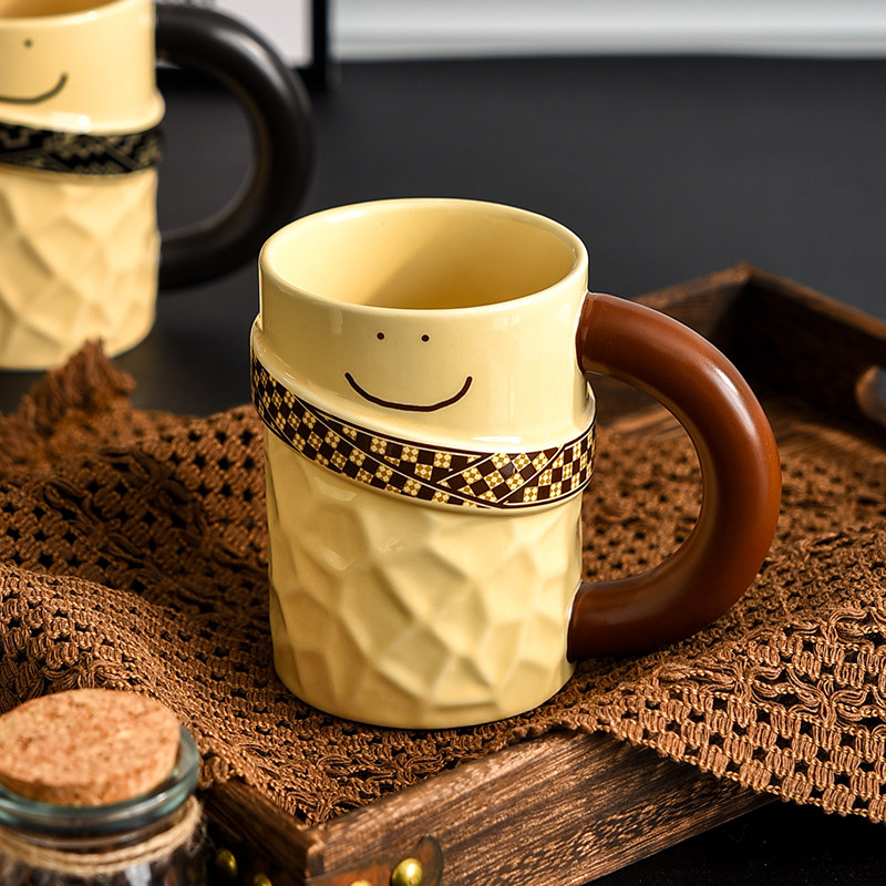 ins陶瓷杯高级感扭扭马克杯家用小众设计情侣咖啡杯女生喝水杯子