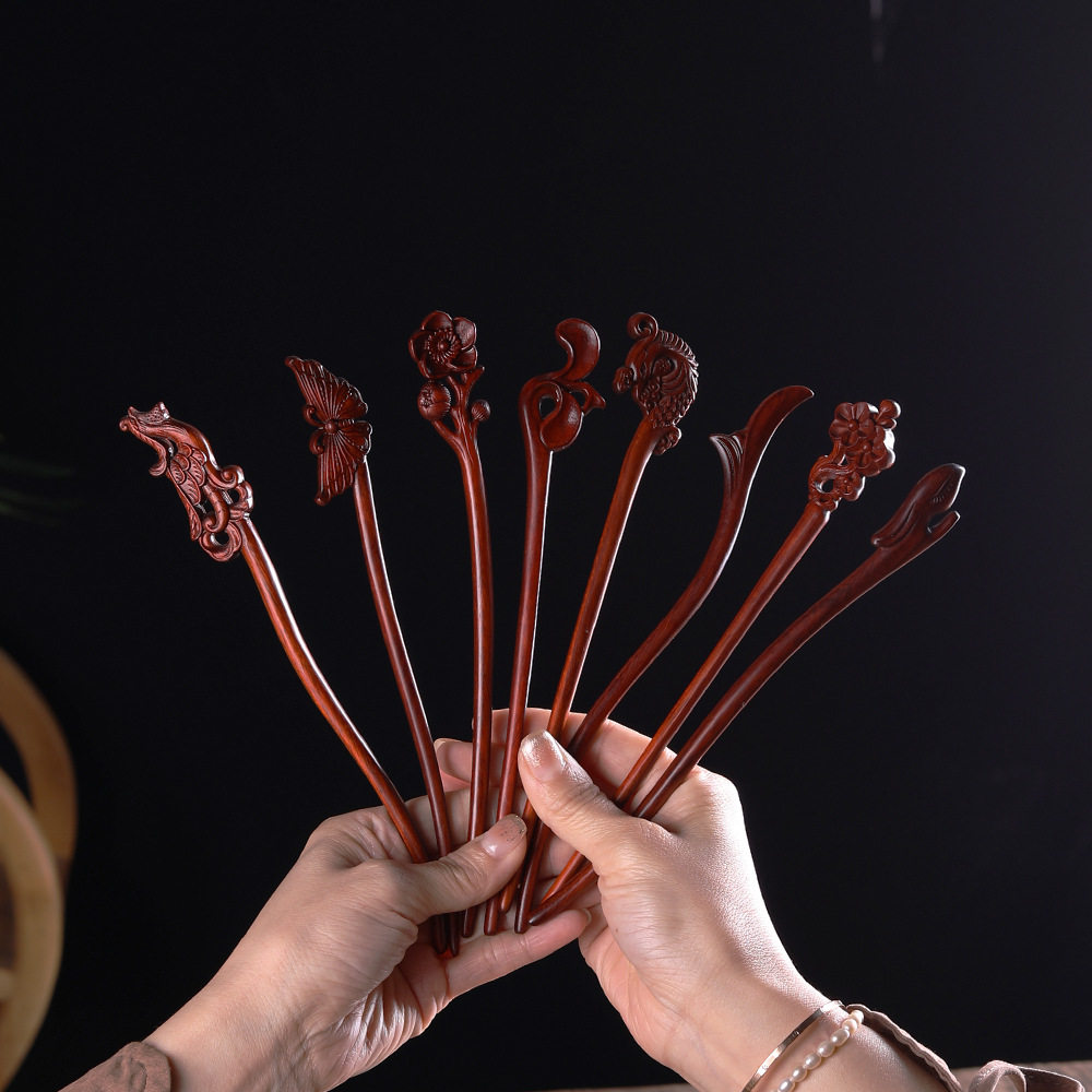 小叶紫檀发簪发钗古风气质木簪子汉服盘发百搭超仙气旗袍简约复古