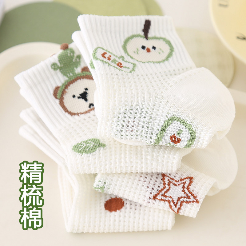 纯棉童袜春秋款夏季薄款防臭不起球男女袜子全棉中筒袜时尚儿童袜