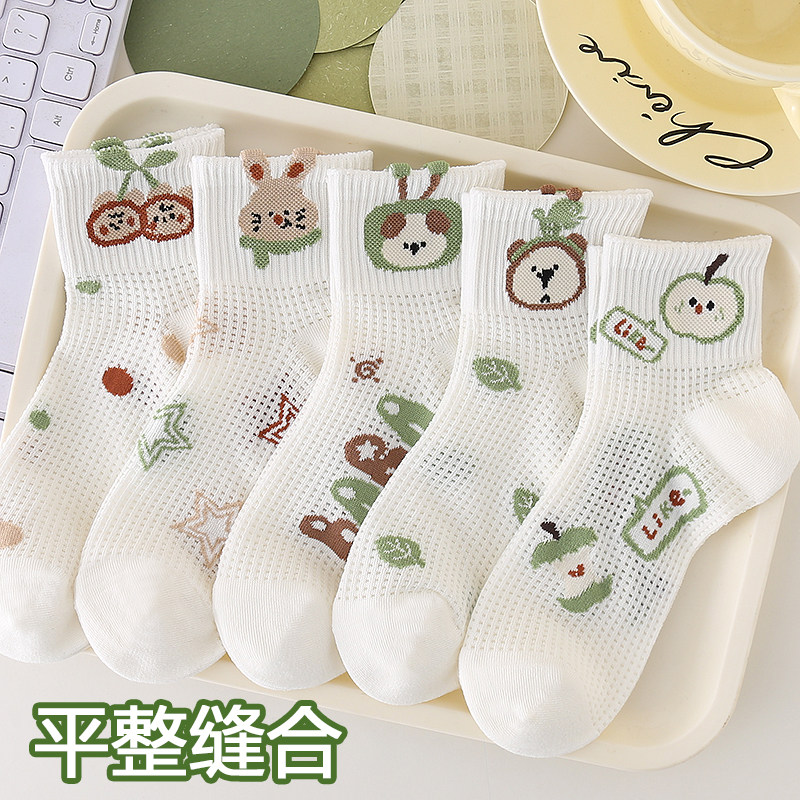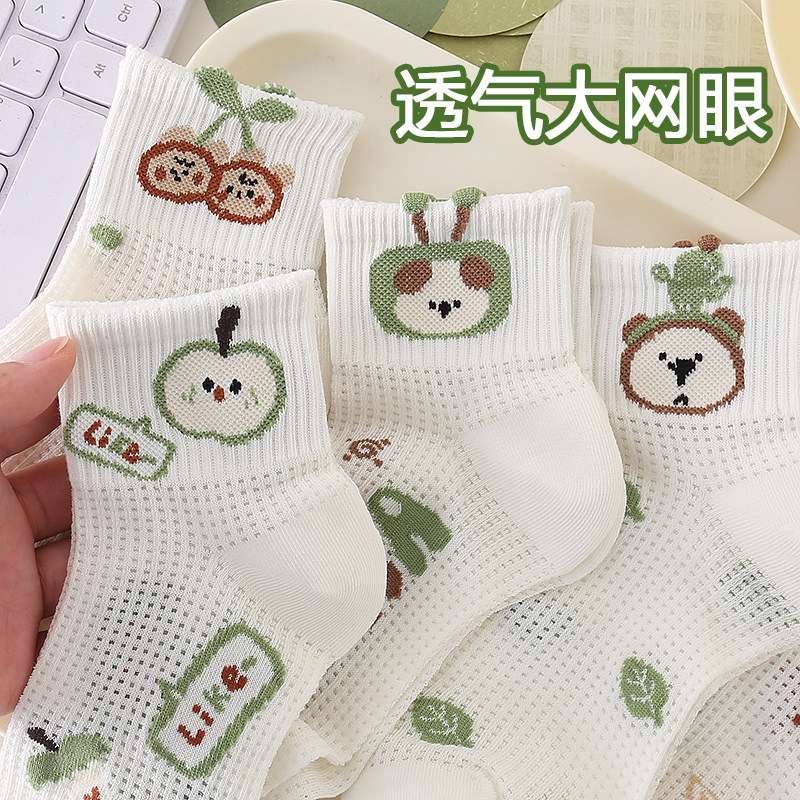 女童袜子透气网眼夏季薄款6到12岁洋气涂鸦女孩儿学生冰丝袜优选