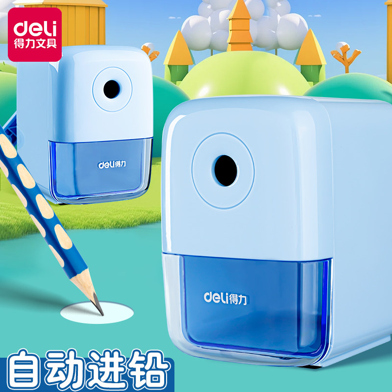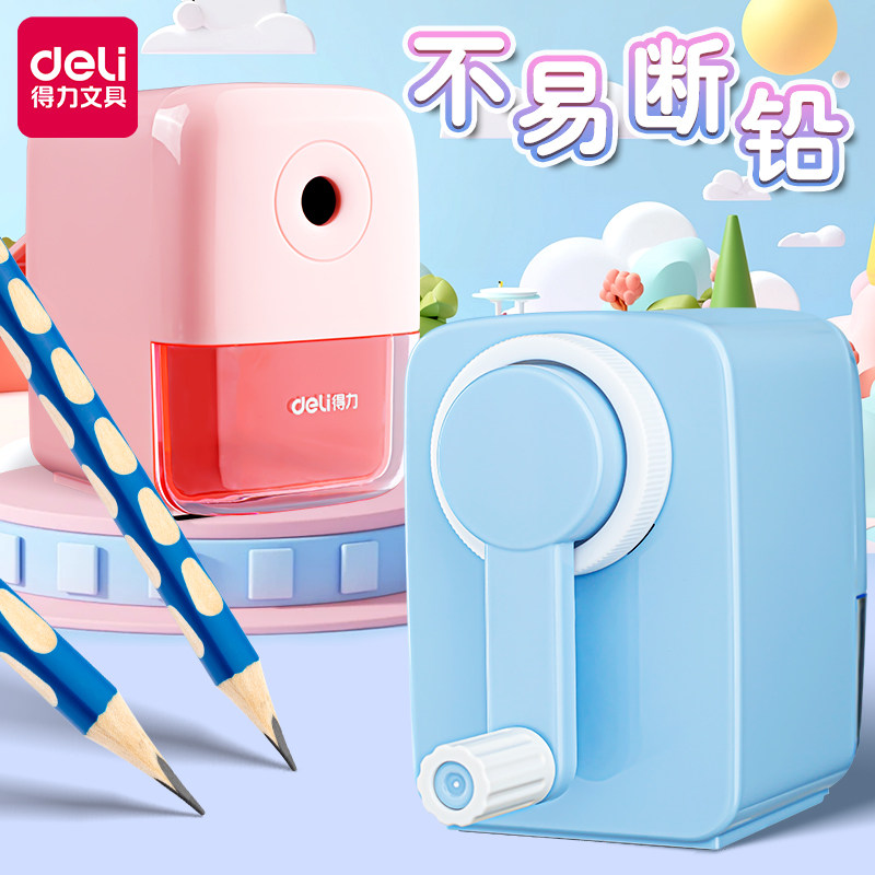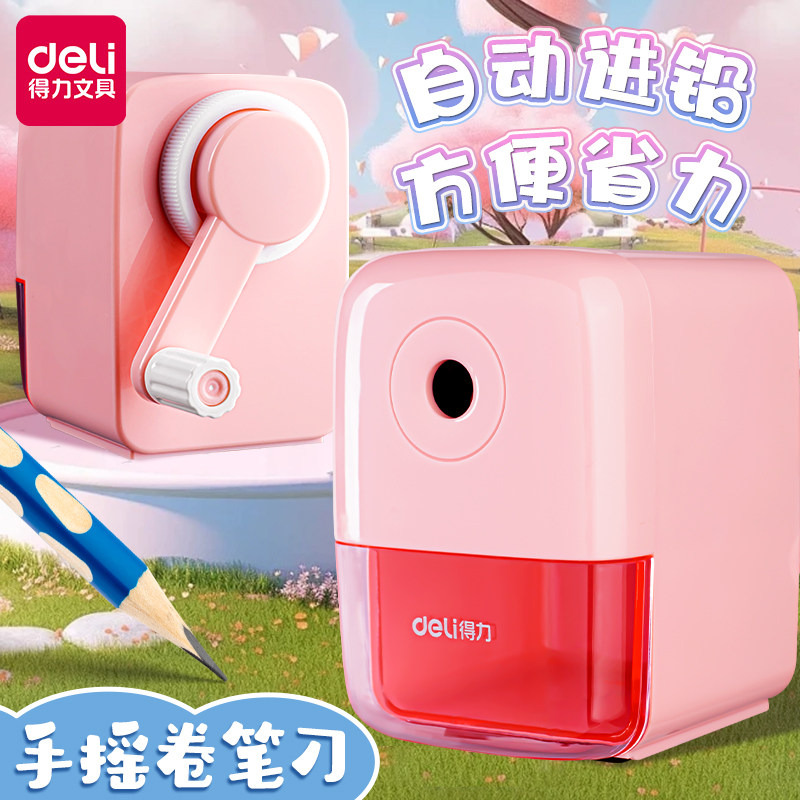 得力卷笔刀自动进笔小学生削笔器刨笔机手动转笔器省力自动进铅转笔刀削笔机手摇粗铅笔刀多功能儿童学习文具