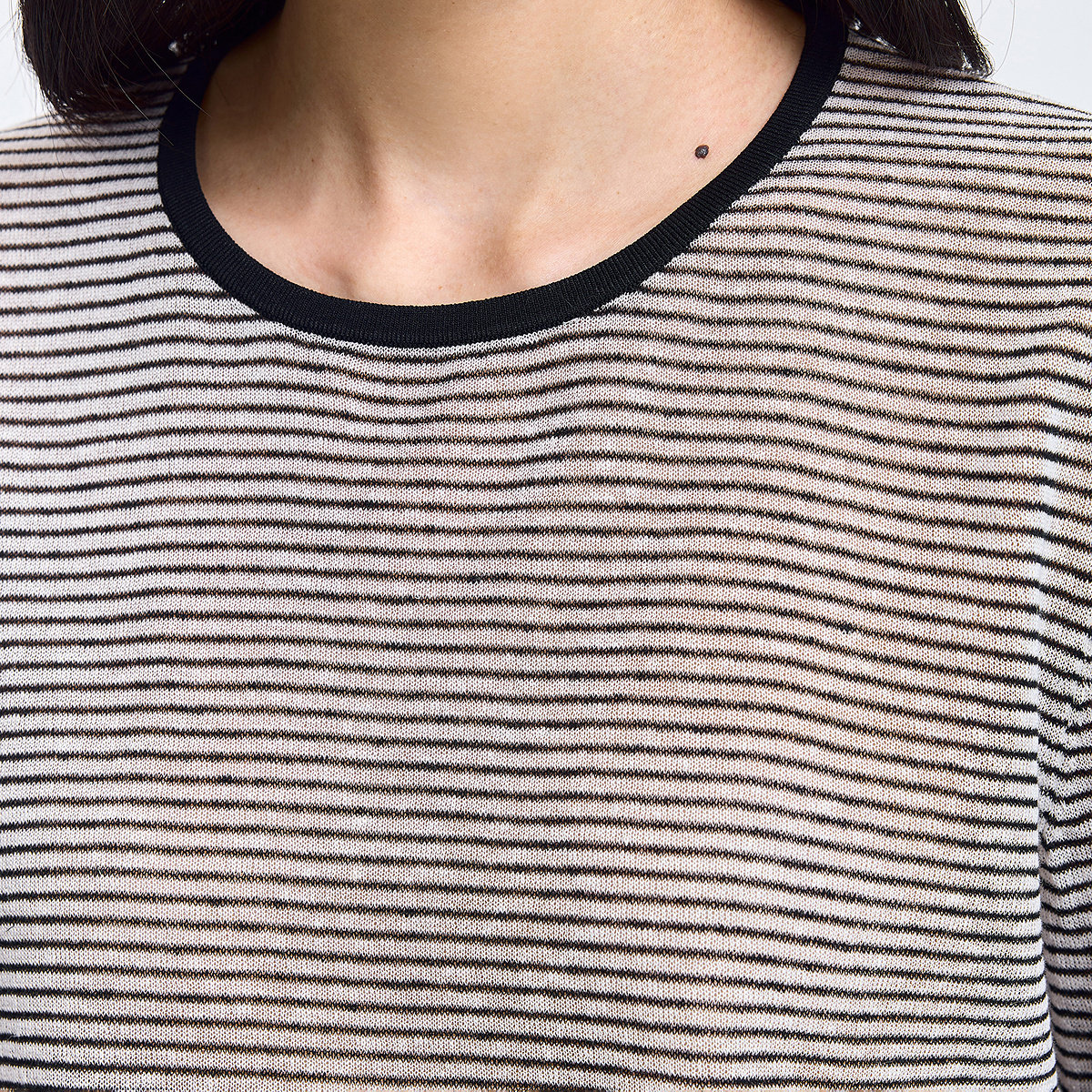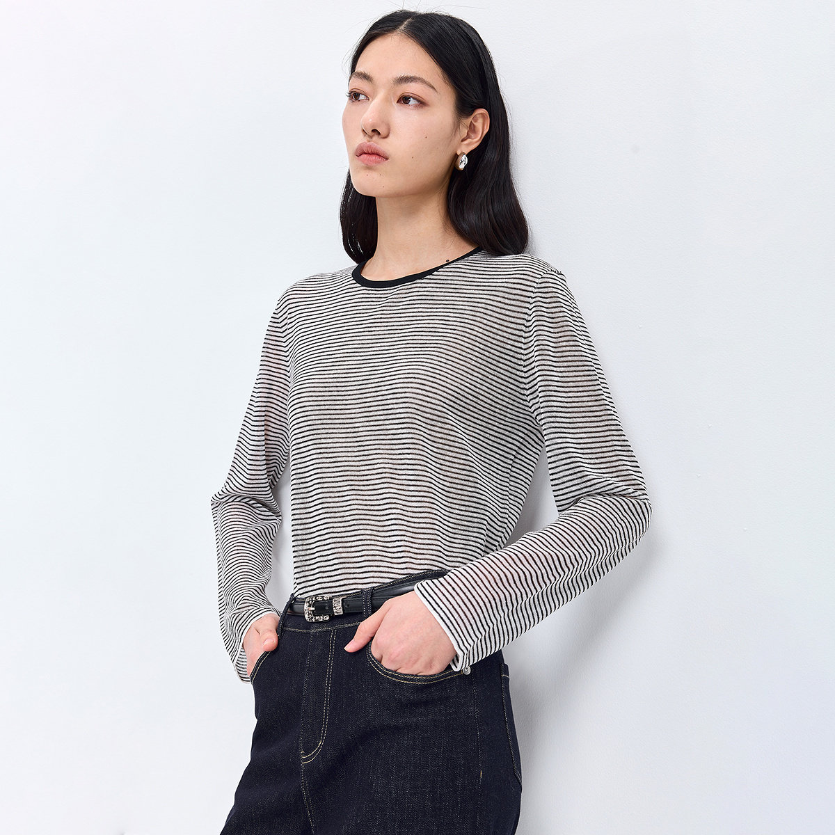 LILY2026春新款莱赛尔亚麻撞色条纹休闲通勤百搭长袖针织衫罩衫女