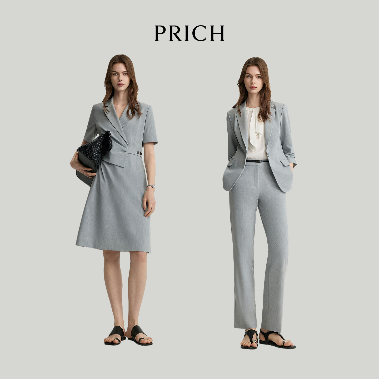 【零染+凉感】PRICH时尚假两件西装连衣裙2026夏新款捏褶裙子女