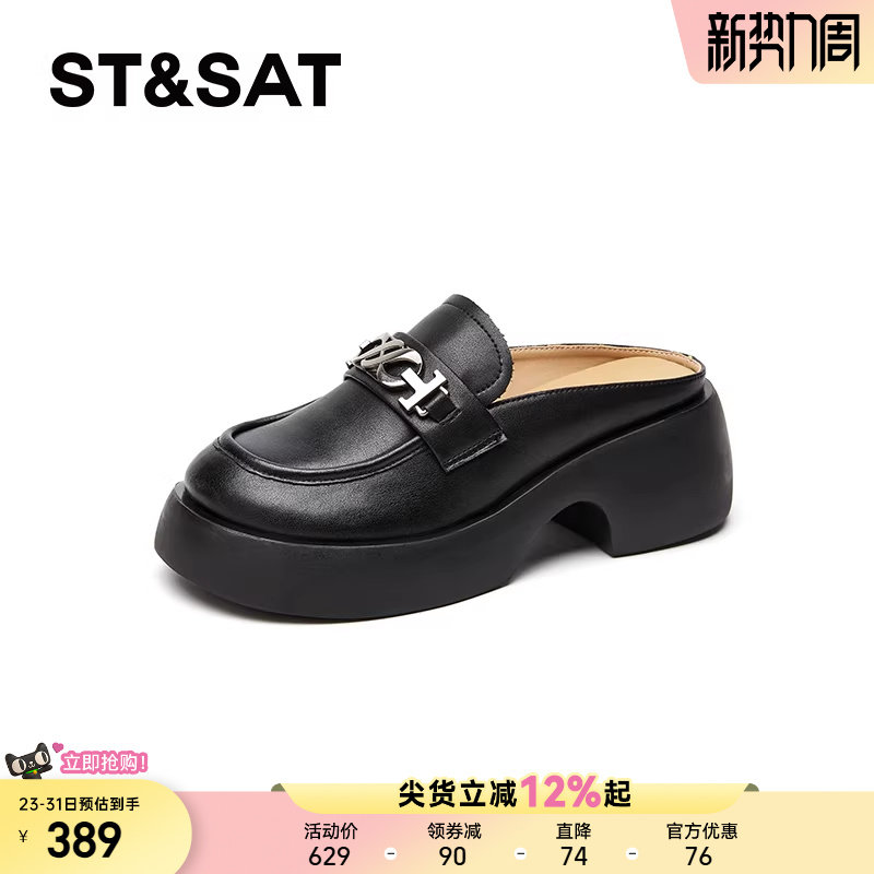 星期六包头半拖鞋女夏季新款厚底增高外穿穆勒鞋懒人一脚蹬乐福鞋