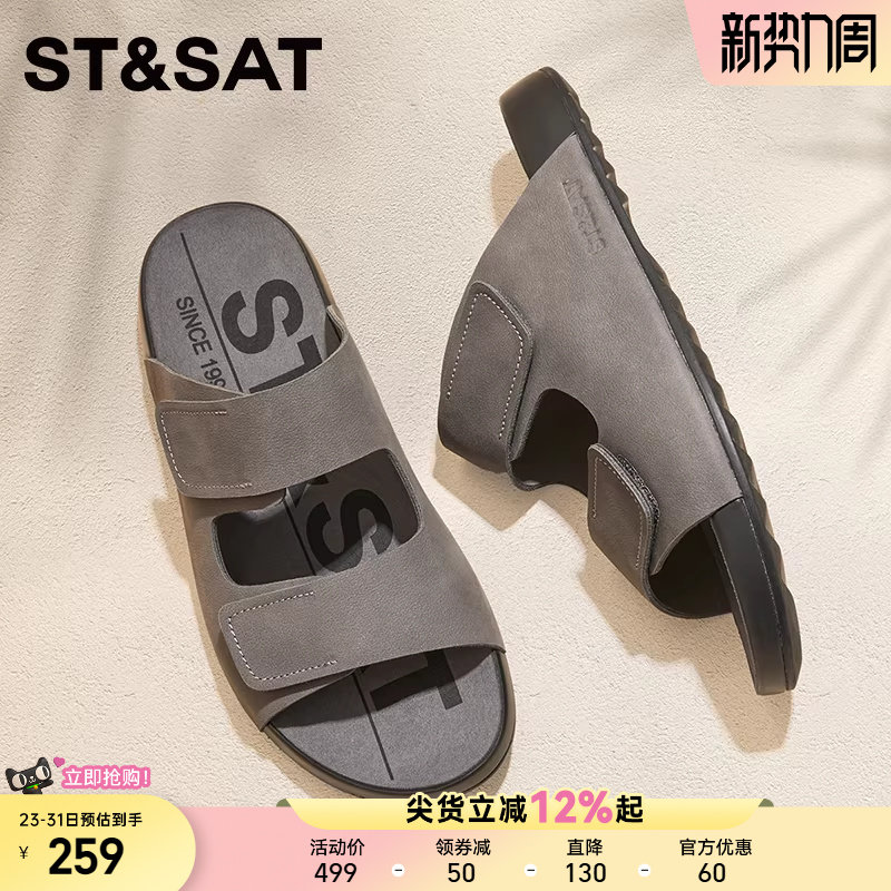 星期六头层牛皮男士拖鞋外穿秋季透气凉拖休闲户外沙滩凉鞋勃肯鞋