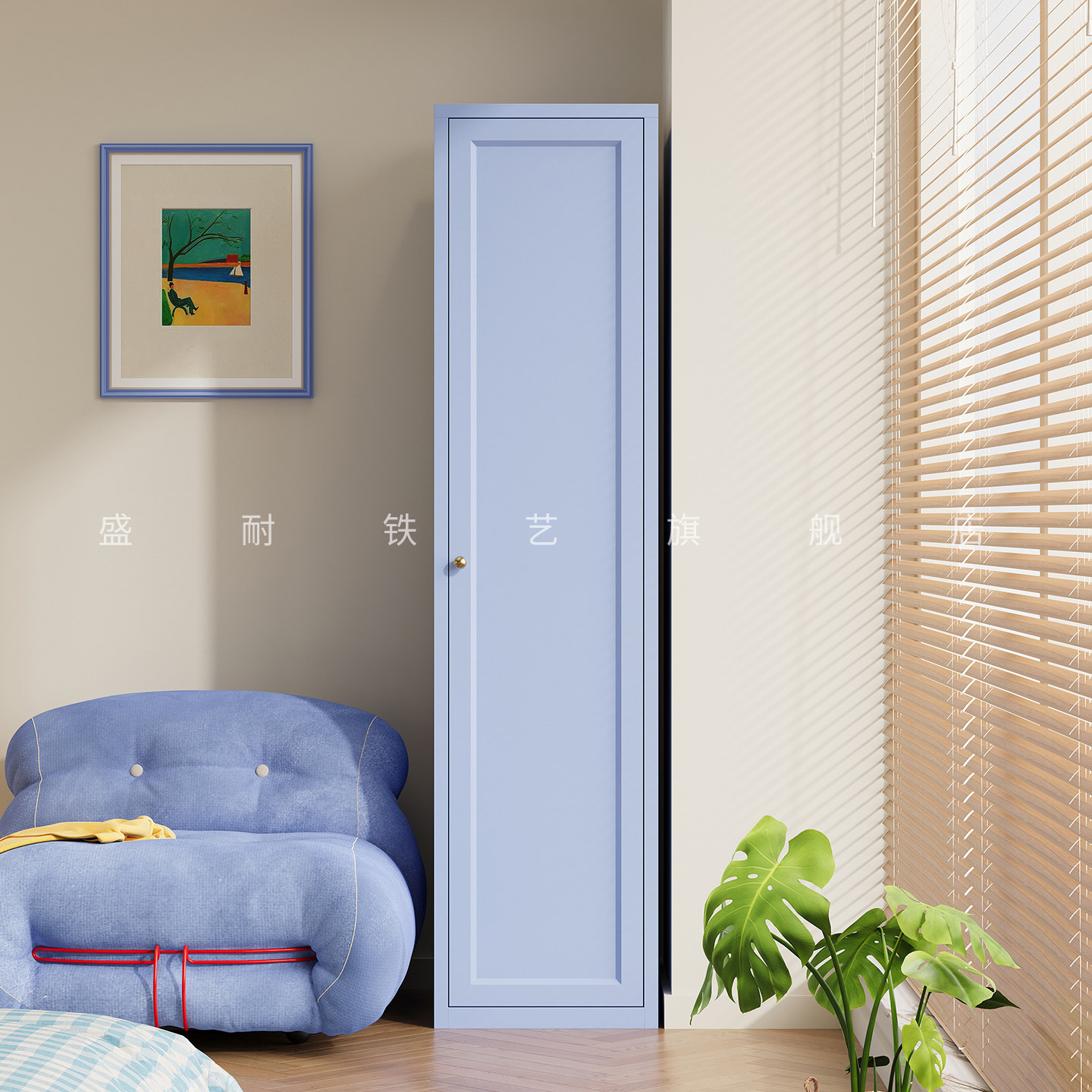 新款中古风金属衣柜小户型家用卧室夹缝窄柜单人铁皮储物柜收纳柜