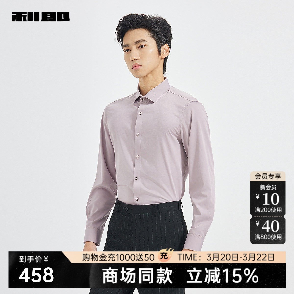 【商场同款】利郎官方纯色长袖衬衫男士春秋款商务衬衣25QZC1081Y