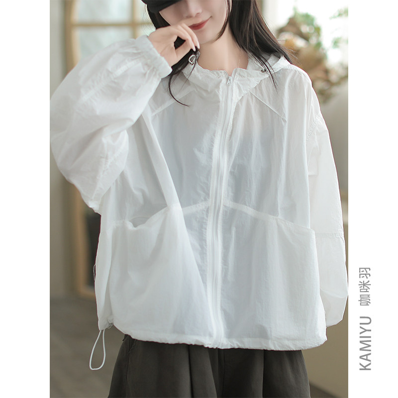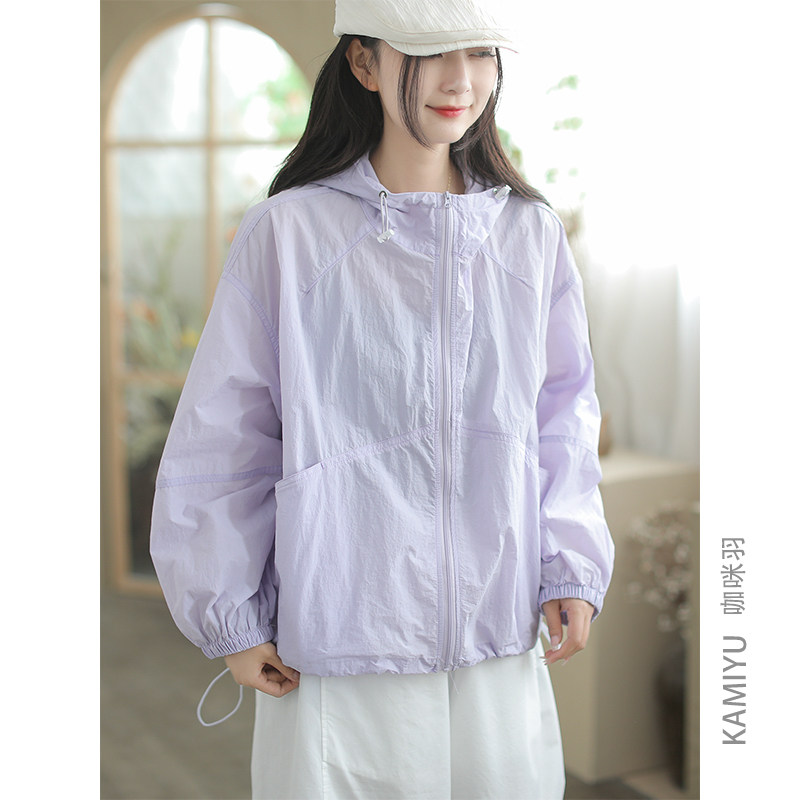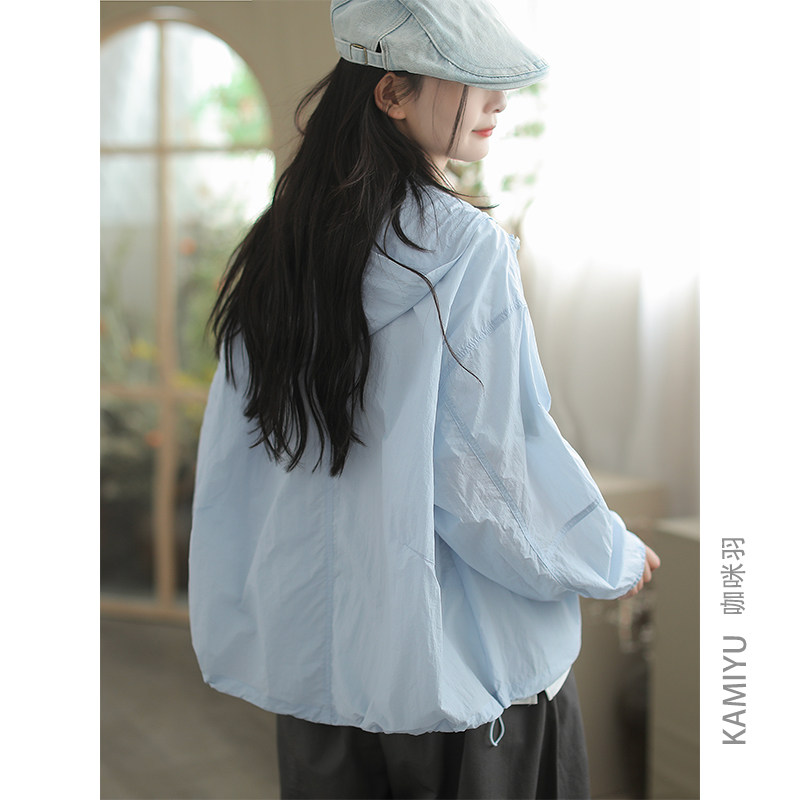 咖咪羽防晒服女夏季新款女式休闲连帽遮阳纯色拼接宽松大码女装