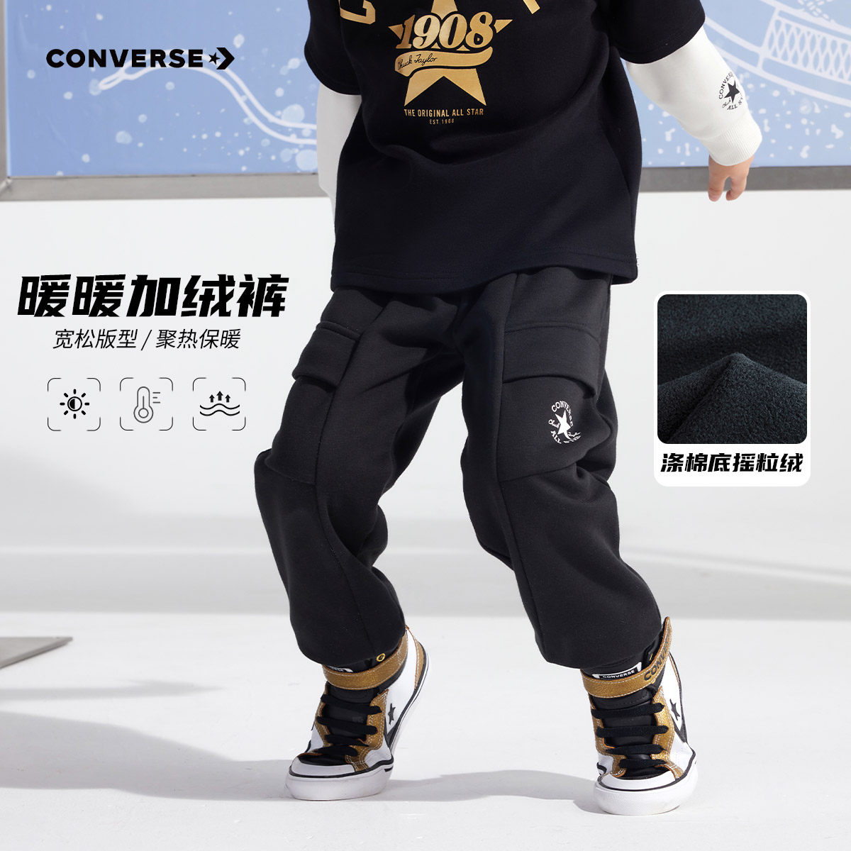 【加绒】匡威儿童装男童长裤青少年春季中大童休闲百搭舒适裤子