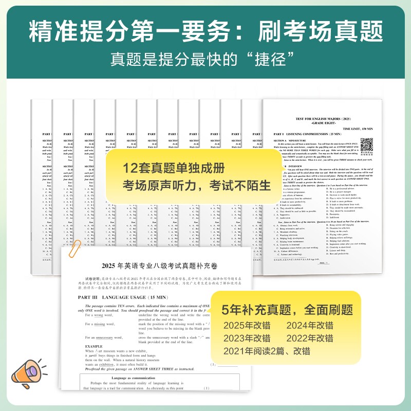 专八真题2026备考星火英语阅读听力词汇书英语专业八级真题翻译改错写作文tem8语法单词试卷备考2025资料详解专项训练