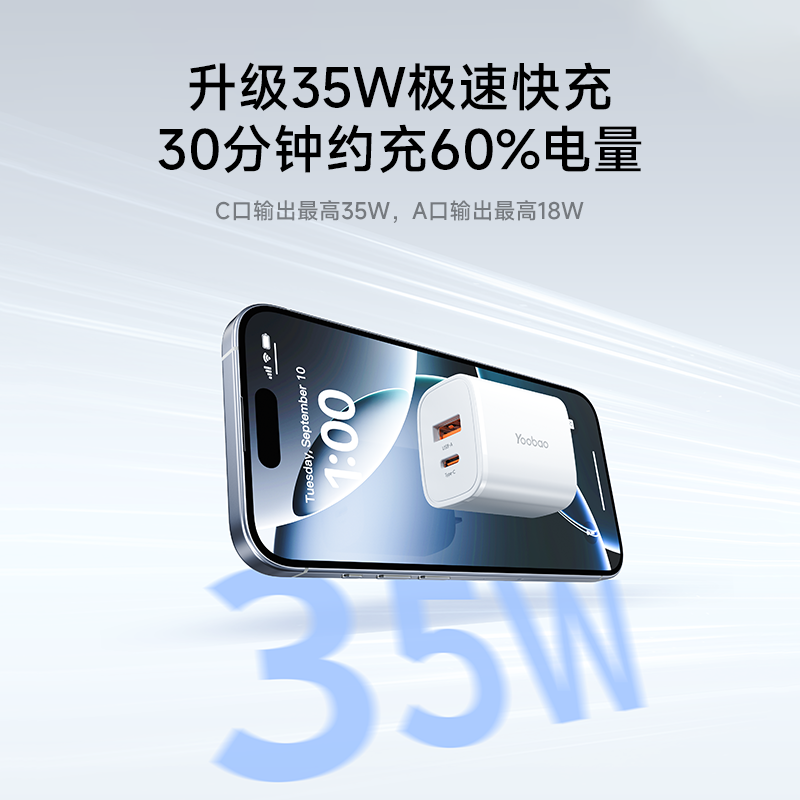 【新品】羽博35W充电器适用苹果17iPhone16氮化镓多口插头pd快充充电头双口手机15通用华为小米typec官方正品