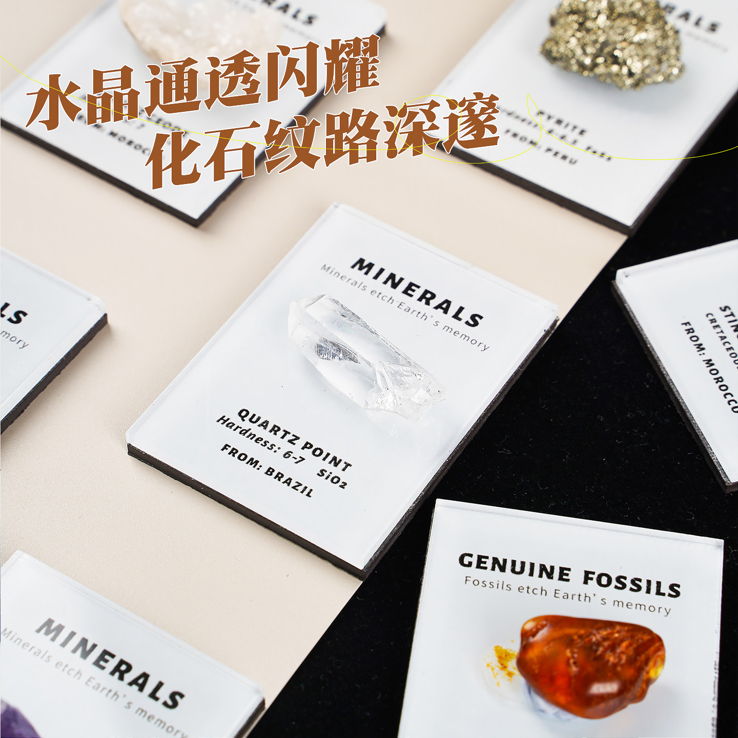 天然化石水晶礼品摆件冰箱贴礼物标本家居饰品矿石装饰琥珀矿物