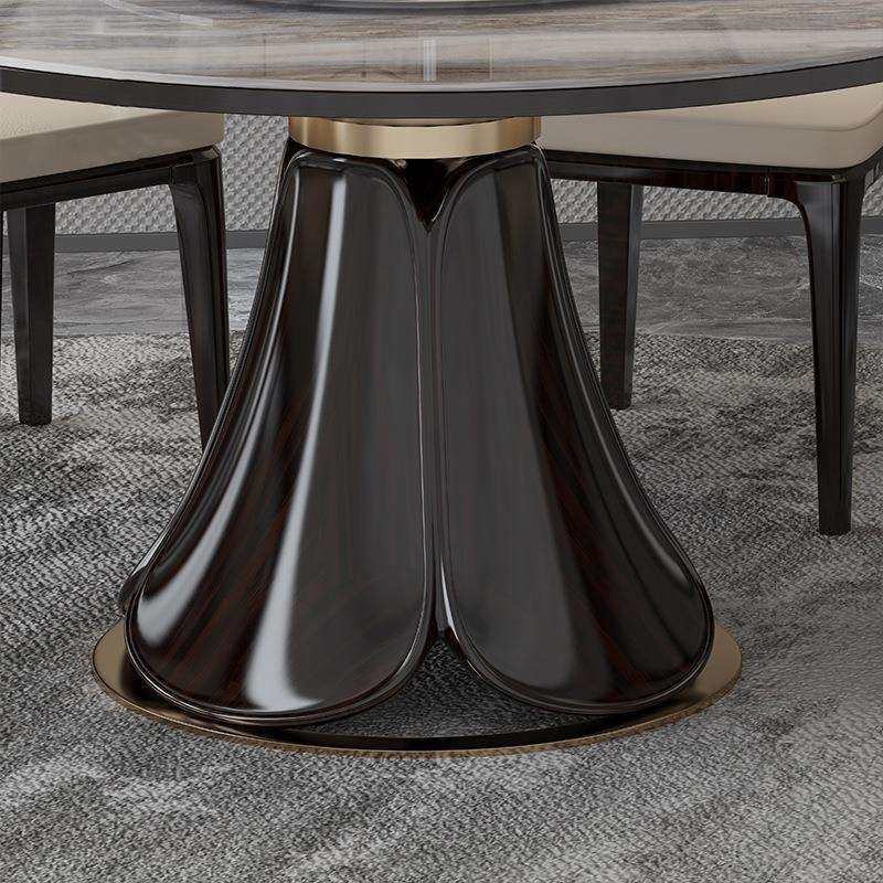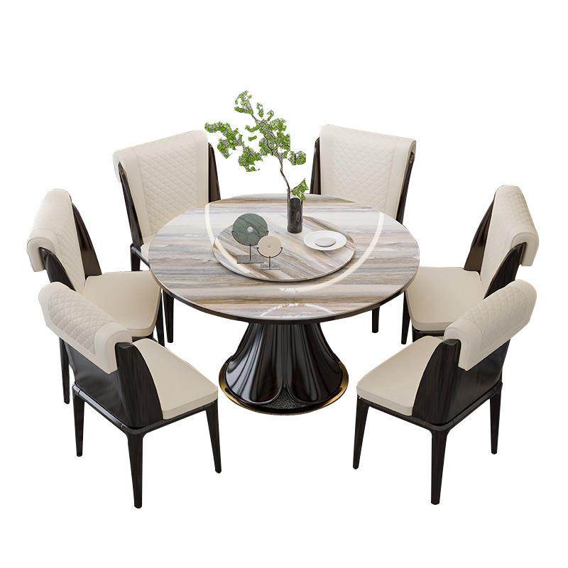 意大利轻奢圆形花瓣型大理石餐桌 样板房设计师椅6人实木饭桌家具