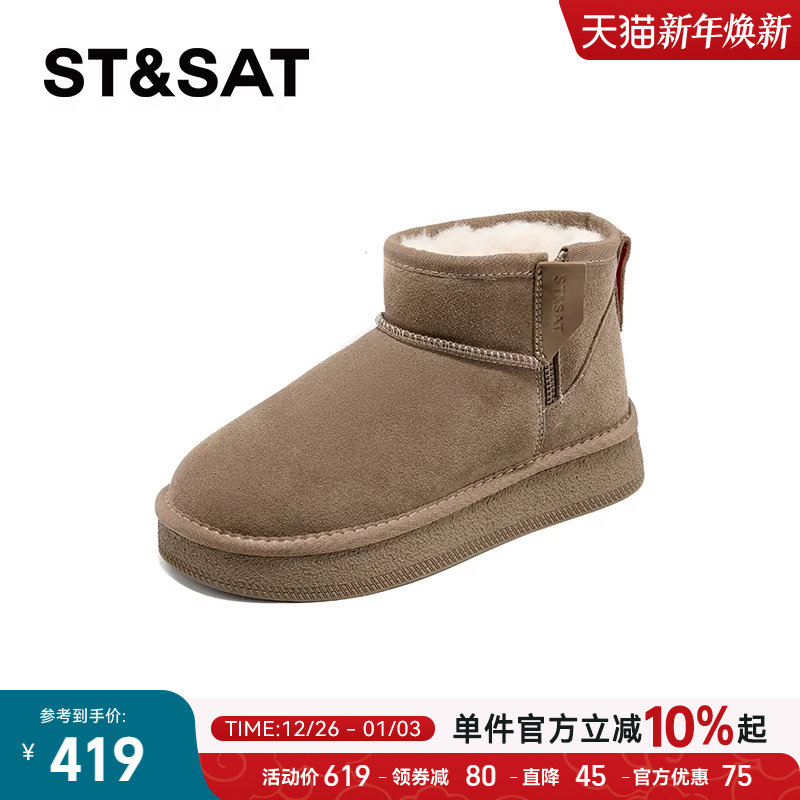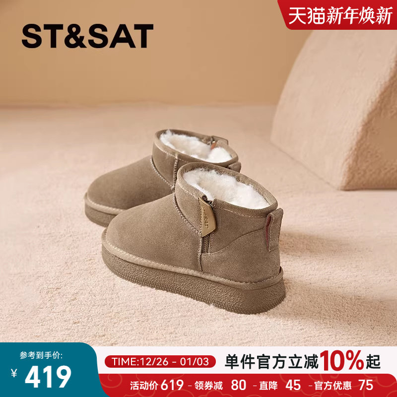 星期六厚底雪地靴女冬2025新款加绒加厚真皮复古短筒靴勃肯棉鞋女