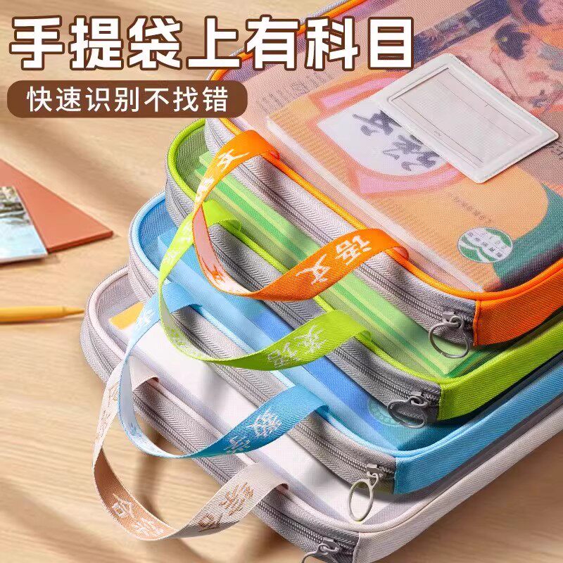 科目分类文件袋透明拉链式a4收纳拎书课外班作业男女孩书包小学初中生l型考试试卷学科补习网纱手提袋大容量