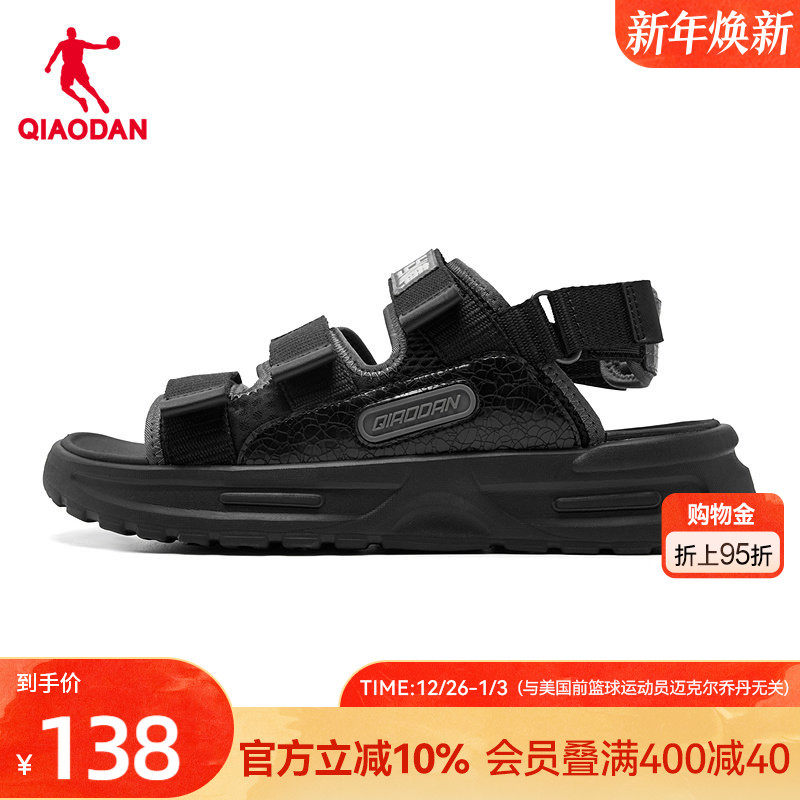 乔丹运动凉鞋男2025夏季新款软底透气沙滩鞋魔术贴黑色凉拖鞋男鞋