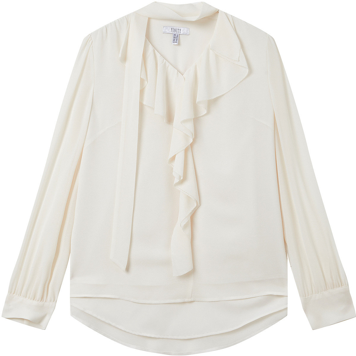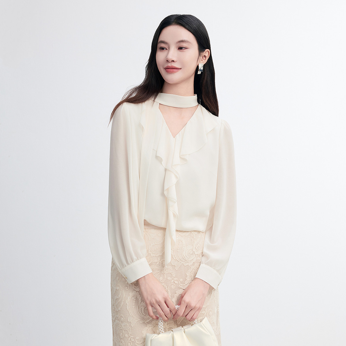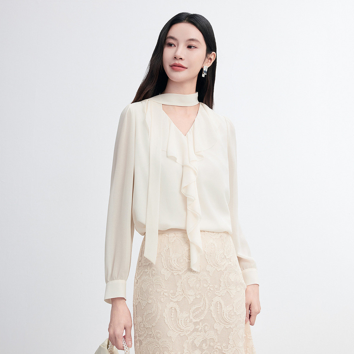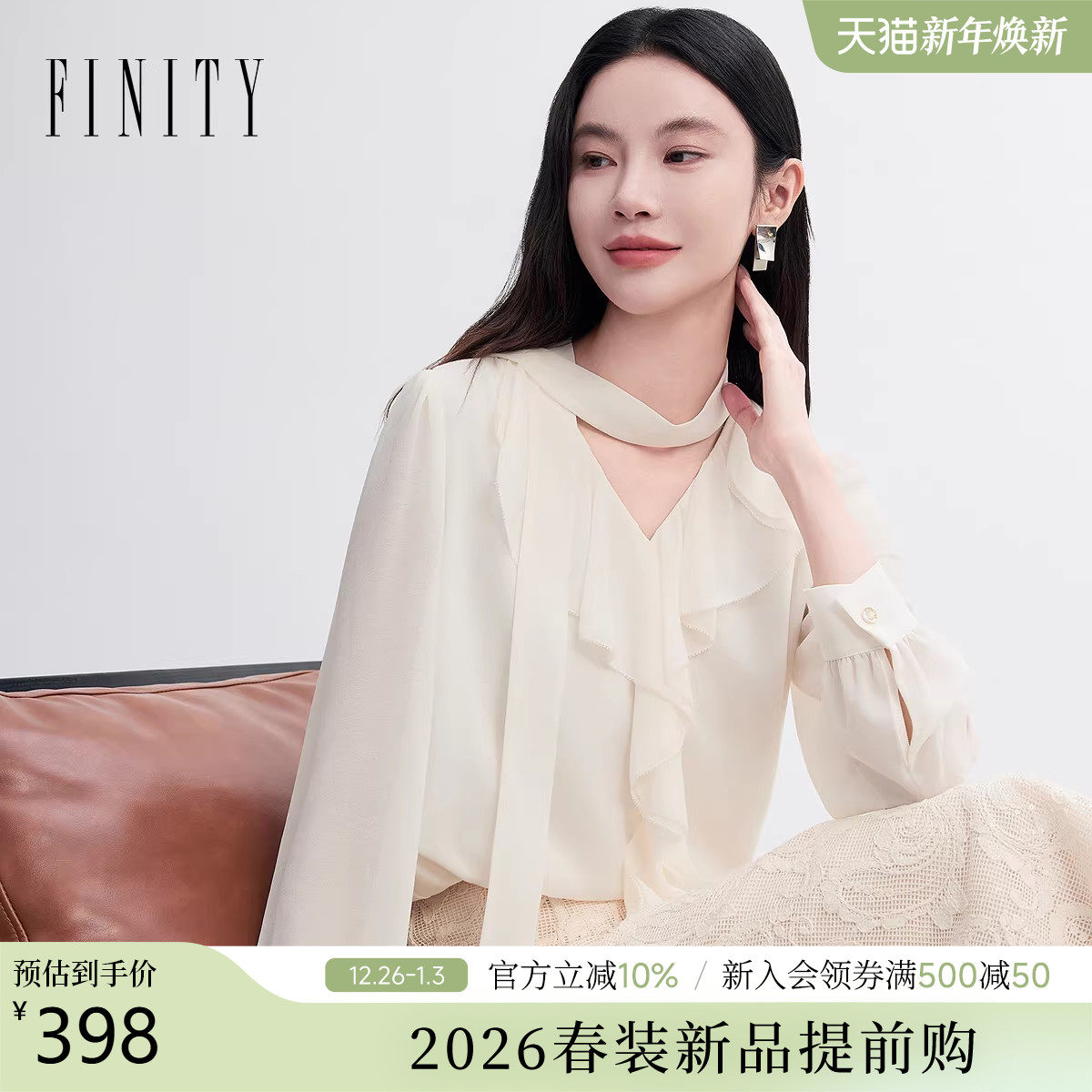 【26春新品】FINITY菲妮迪新款雪纺衫简约飘带荷叶V领气质上衣女