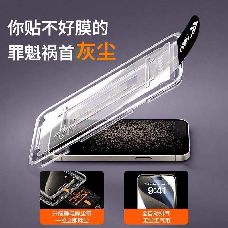 秒贴无尘17promax钢化膜新款iPhone16pro手机膜全屏15/14/13防窥顺12plus高清11防爆屏幕贴膜