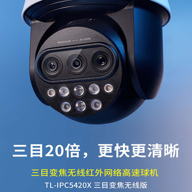 TP-LINK普联 20倍变焦 双频5G WiFi监控摄像头高速球机 360°全景室外防水远程网络高清 5420X三目变焦无线版
