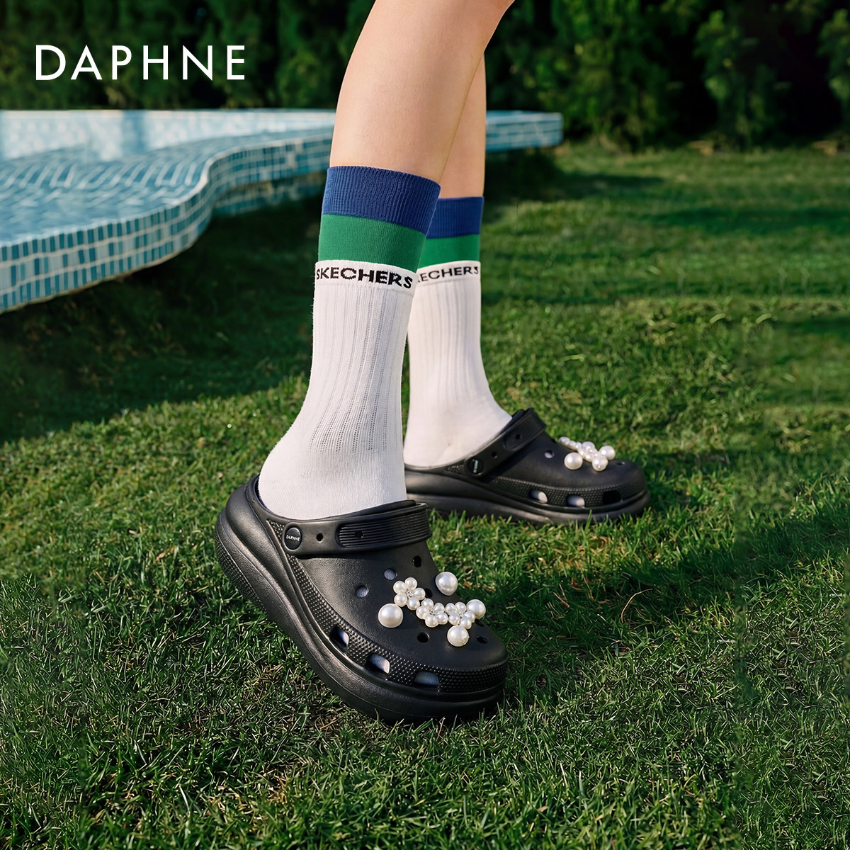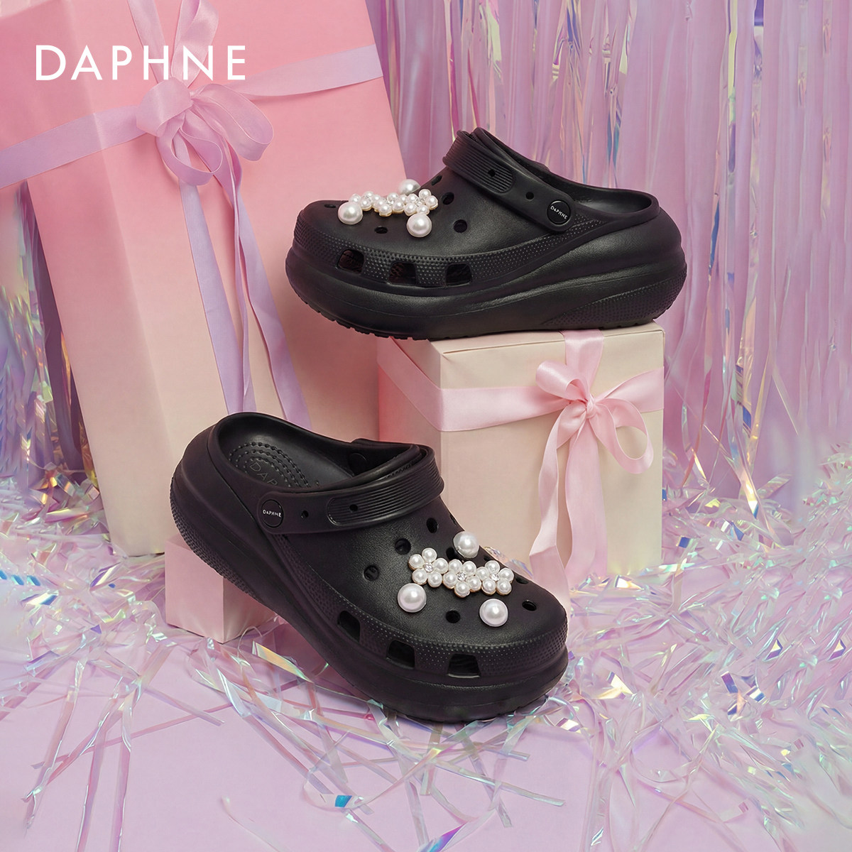 达芙妮黑色洞洞鞋女款2026新款夏季厚底增高凉鞋透气软底包头拖鞋