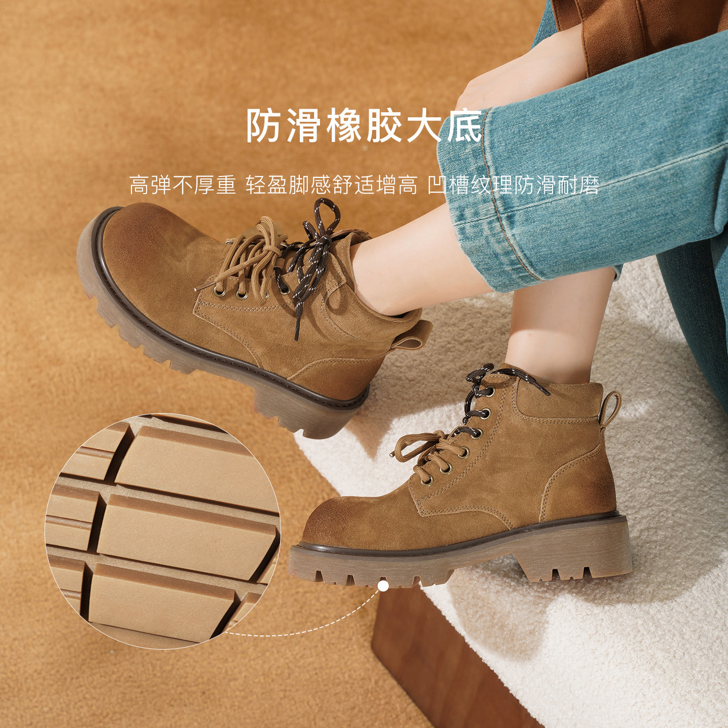 天美意复古英伦风厚底加绒马丁靴女鞋子冬新款休闲短靴皮靴时装靴
