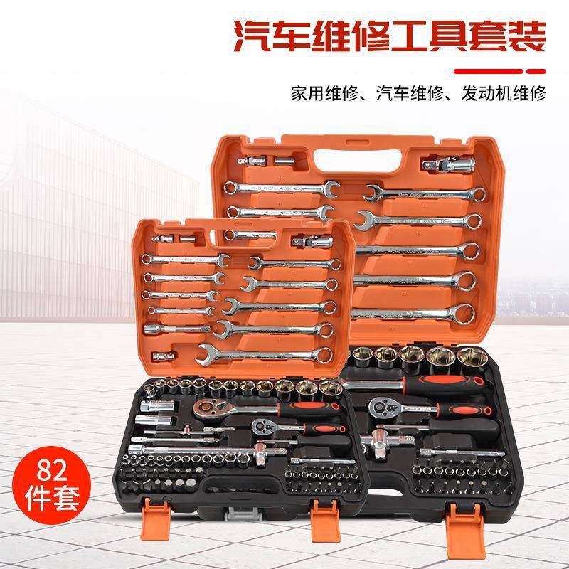 82件套汽修修车万用套头板扳手棘轮套筒套装组合全套维修工具箱