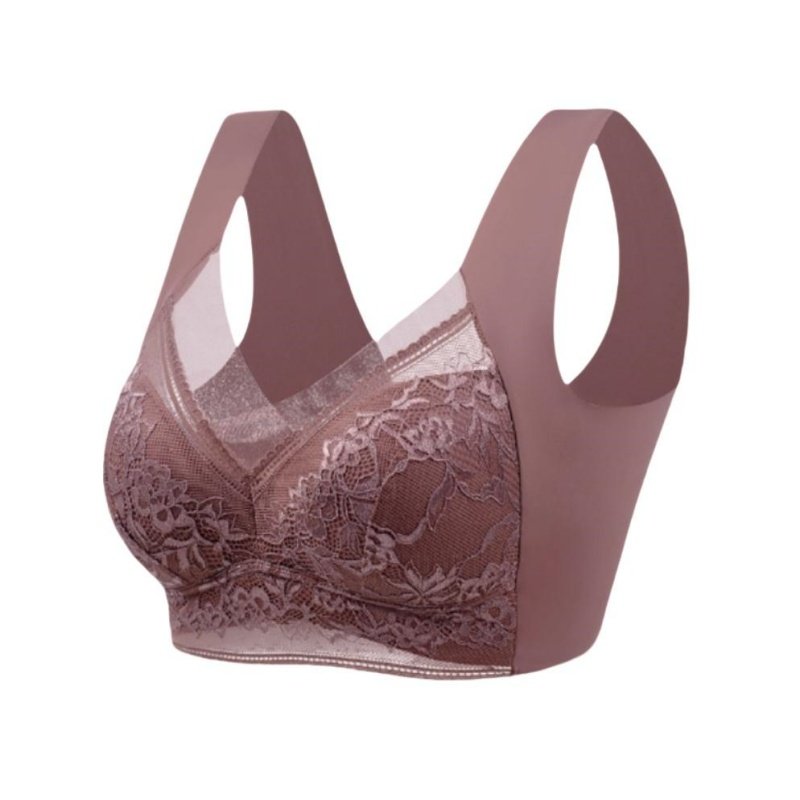 润微茶肌内衣女士大胸显小薄款收副乳聚拢大码上托防下垂蕾丝文胸