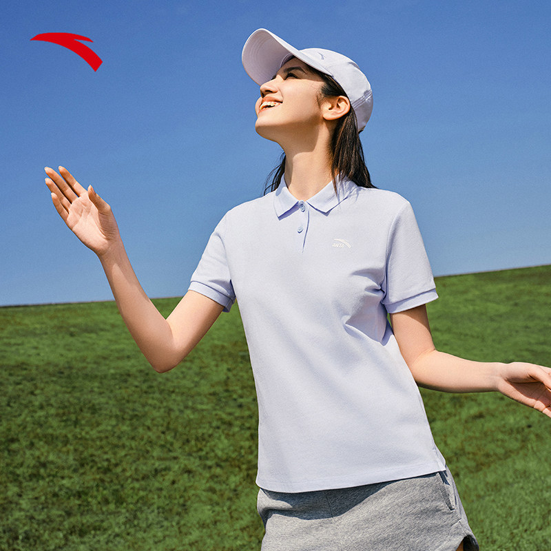 安踏休闲POLO衫短袖女2025夏季新款翻领t恤透气运动上衣162528101