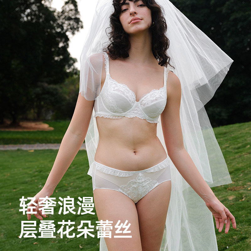【叛逆新娘-白山茶】遐婚纱内裤女夏不夹臀性感蕾丝中腰平角裤