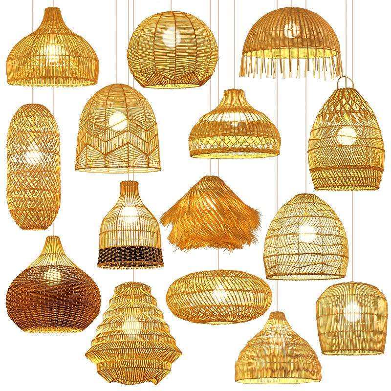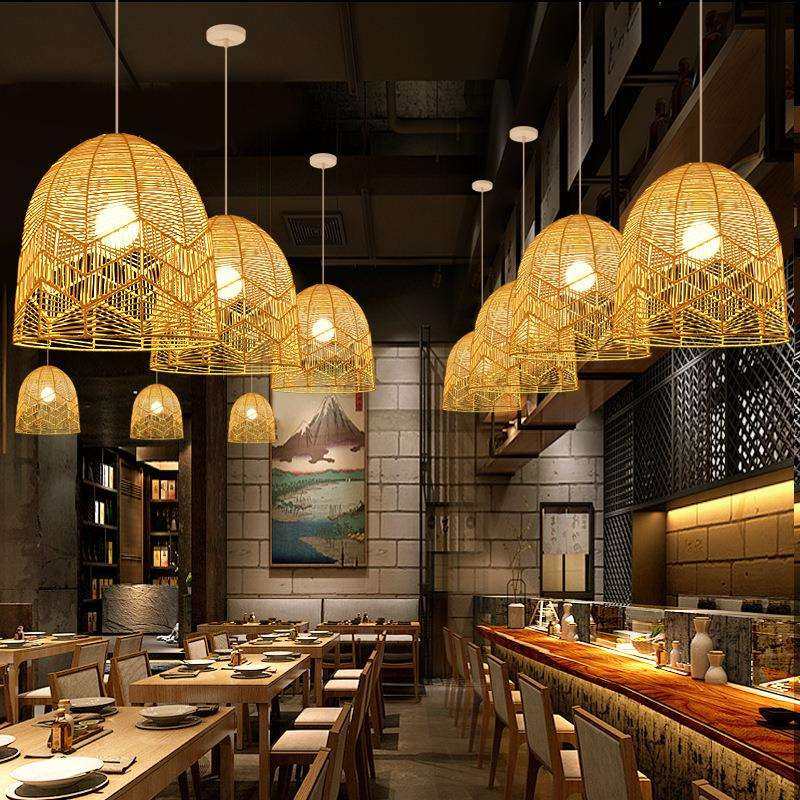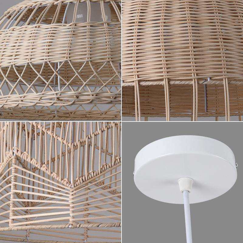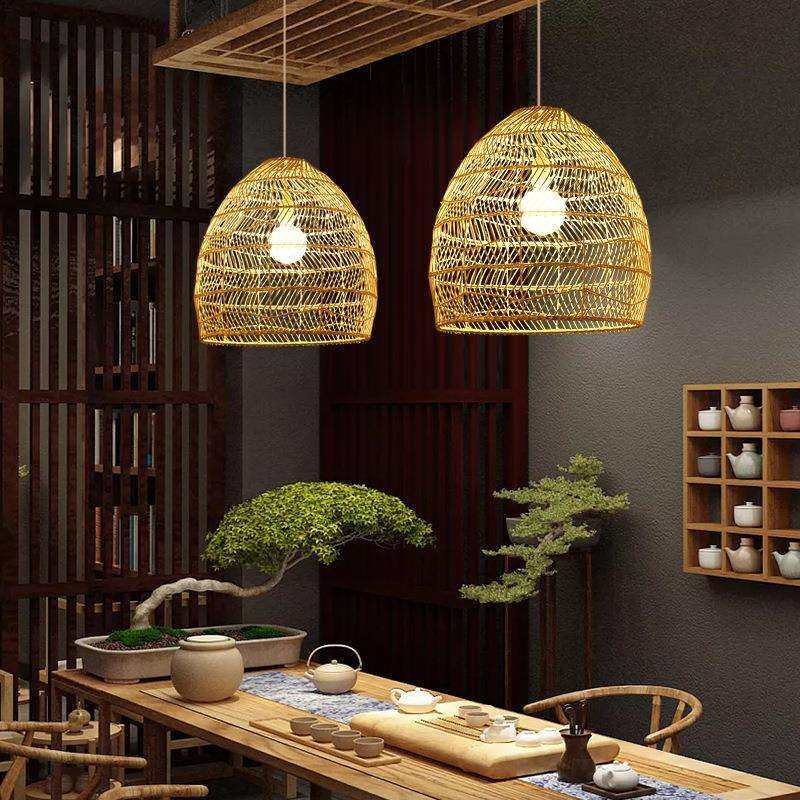 藤艺吊灯创意个性餐厅吧台民宿饭店圆球形复古竹编鸟巢草帽装饰灯