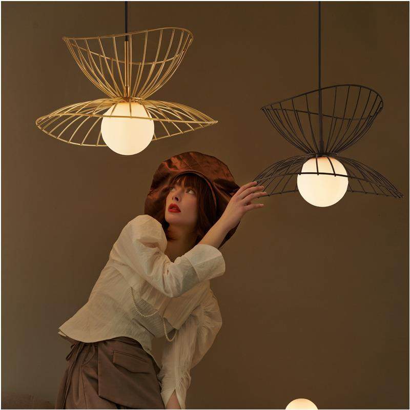 简约现代餐厅吊灯创意餐桌吧台北欧奶茶店设计师个性铁艺草帽吊灯