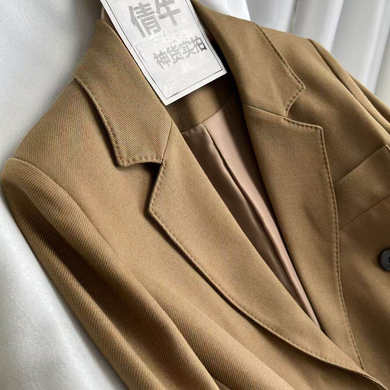 灰色自制小西服女oversize小众设计感宽松学院风卡其大码西装外套