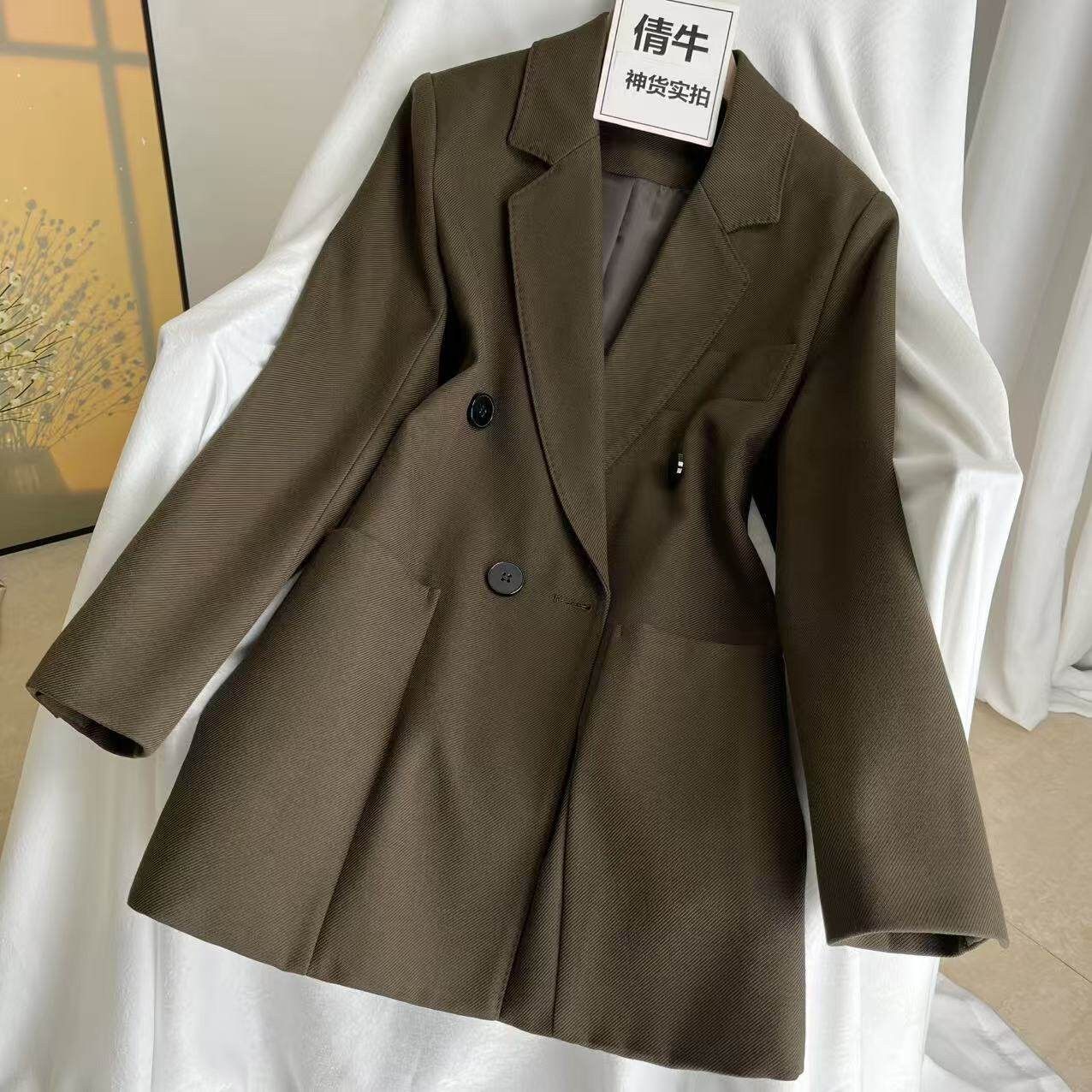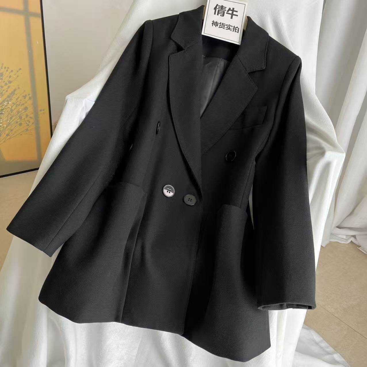 倩牛特价出清】59羊毛12真丝 廓形西装外套女宽松大气双排扣西服