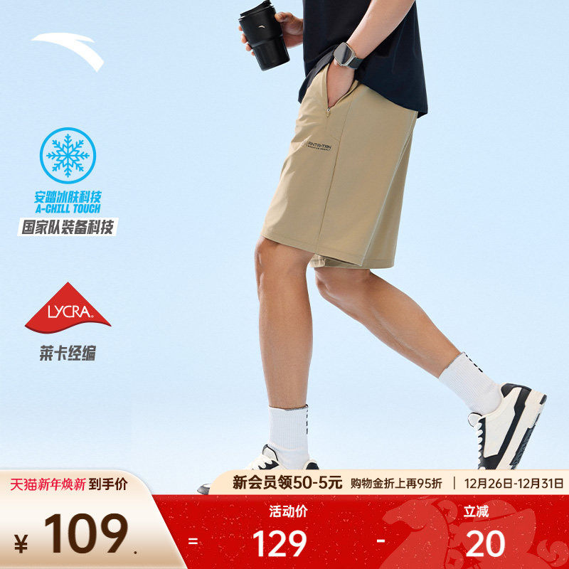 安踏冰丝型动短裤丨男夏季新款透气五分裤弹力速干裤防晒运动短裤
