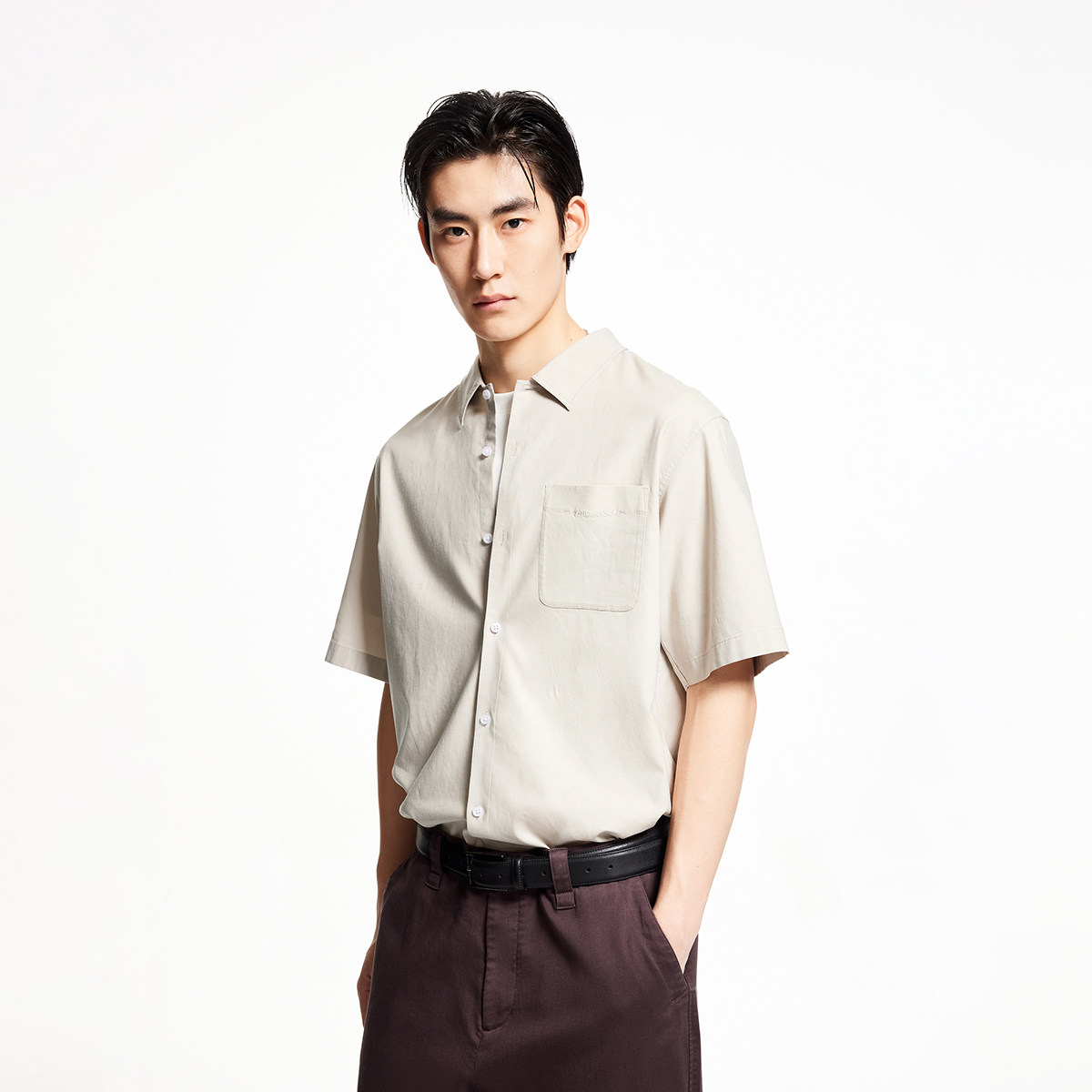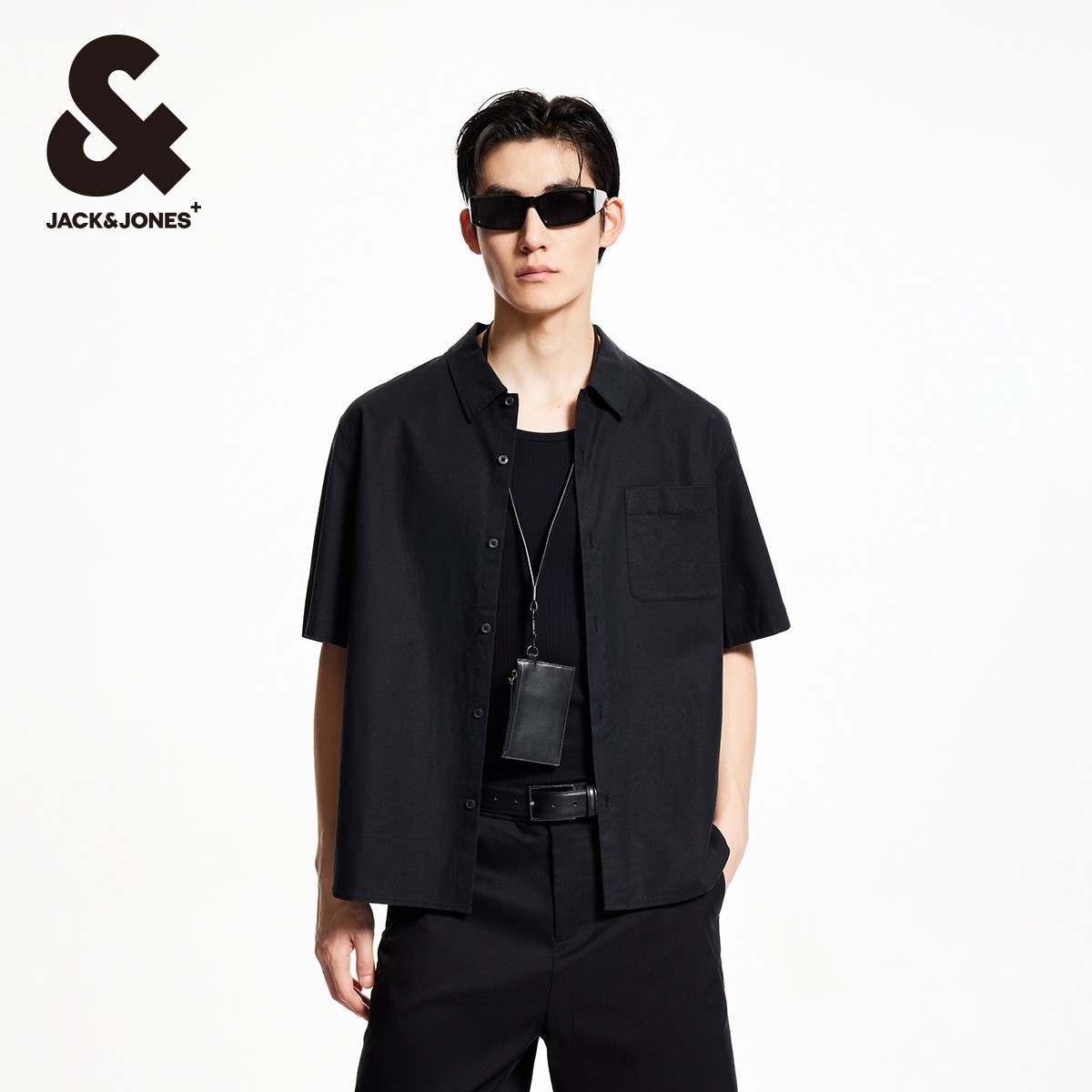 杰克琼斯奥特莱斯夏季字母刺绣时尚百搭休闲宽松短袖翻领衬衫男装