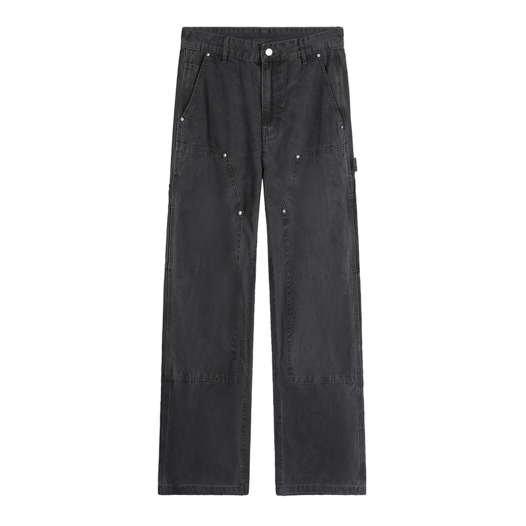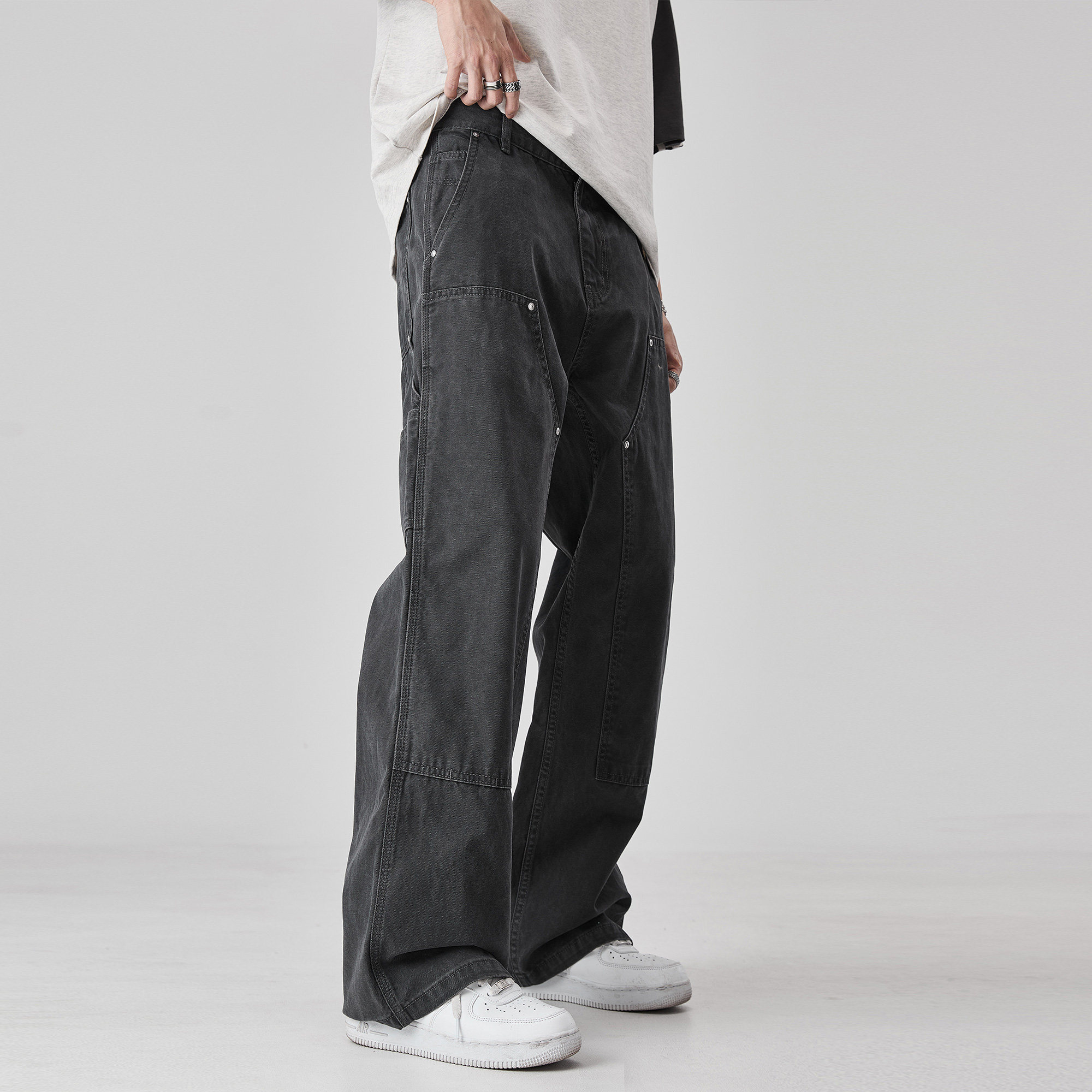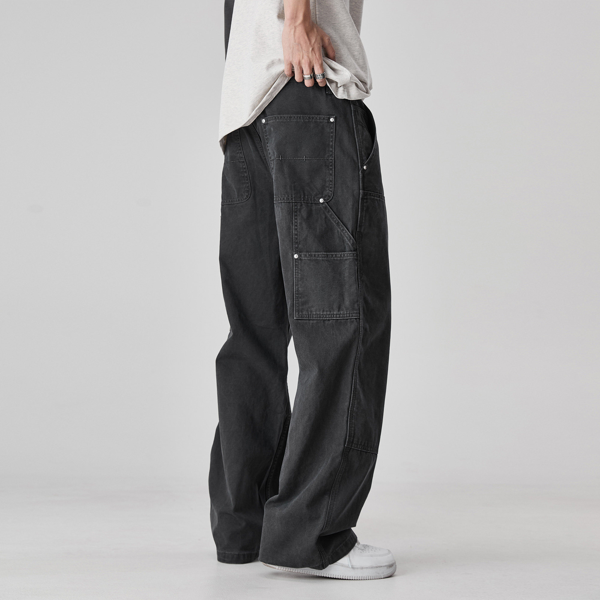 ALLIN 灰色工装牛仔裤男秋冬水洗做旧伐木裤宽松直筒阔腿休闲裤子