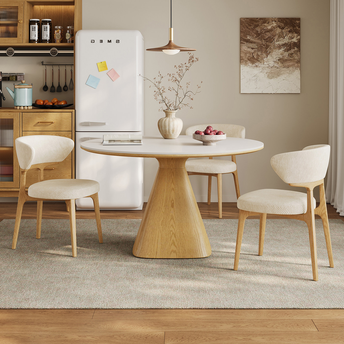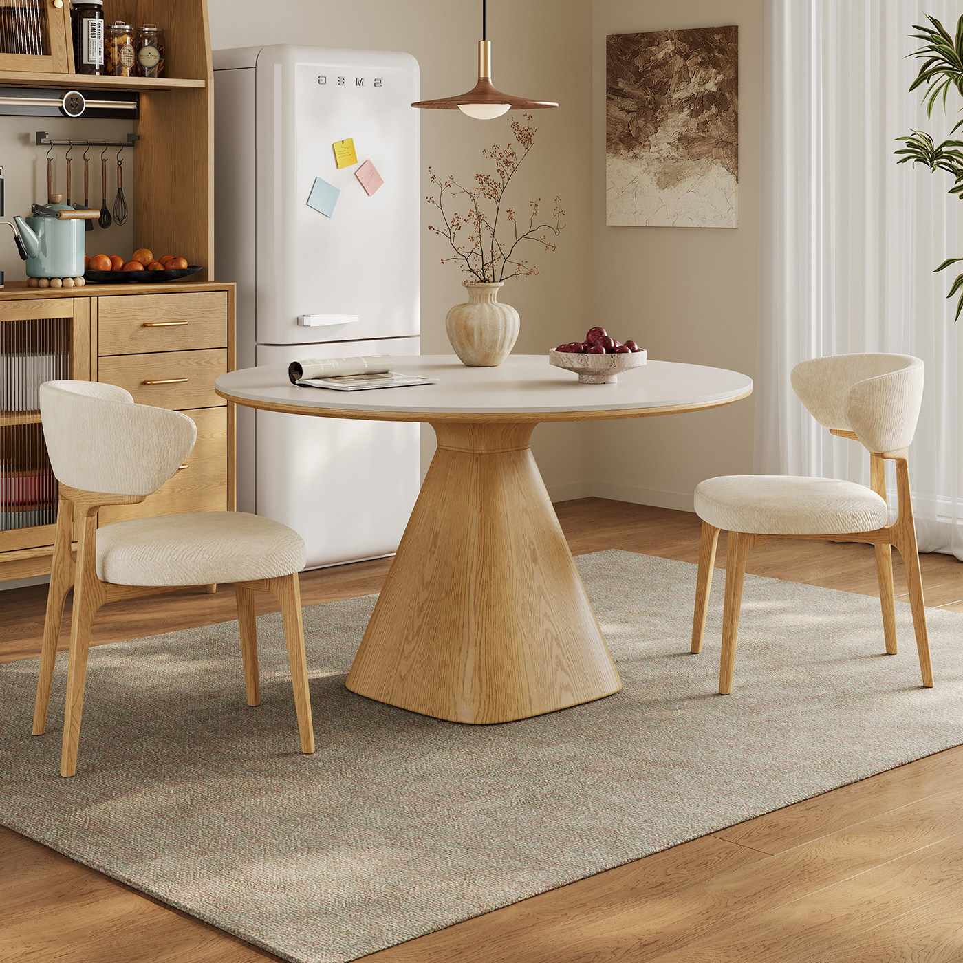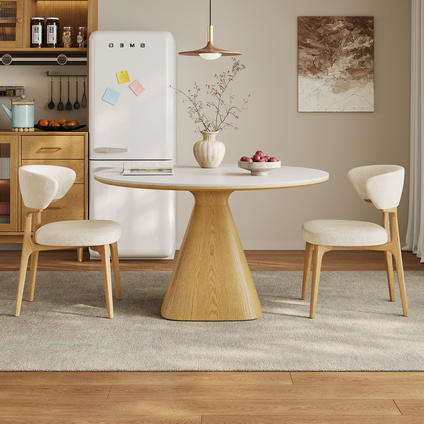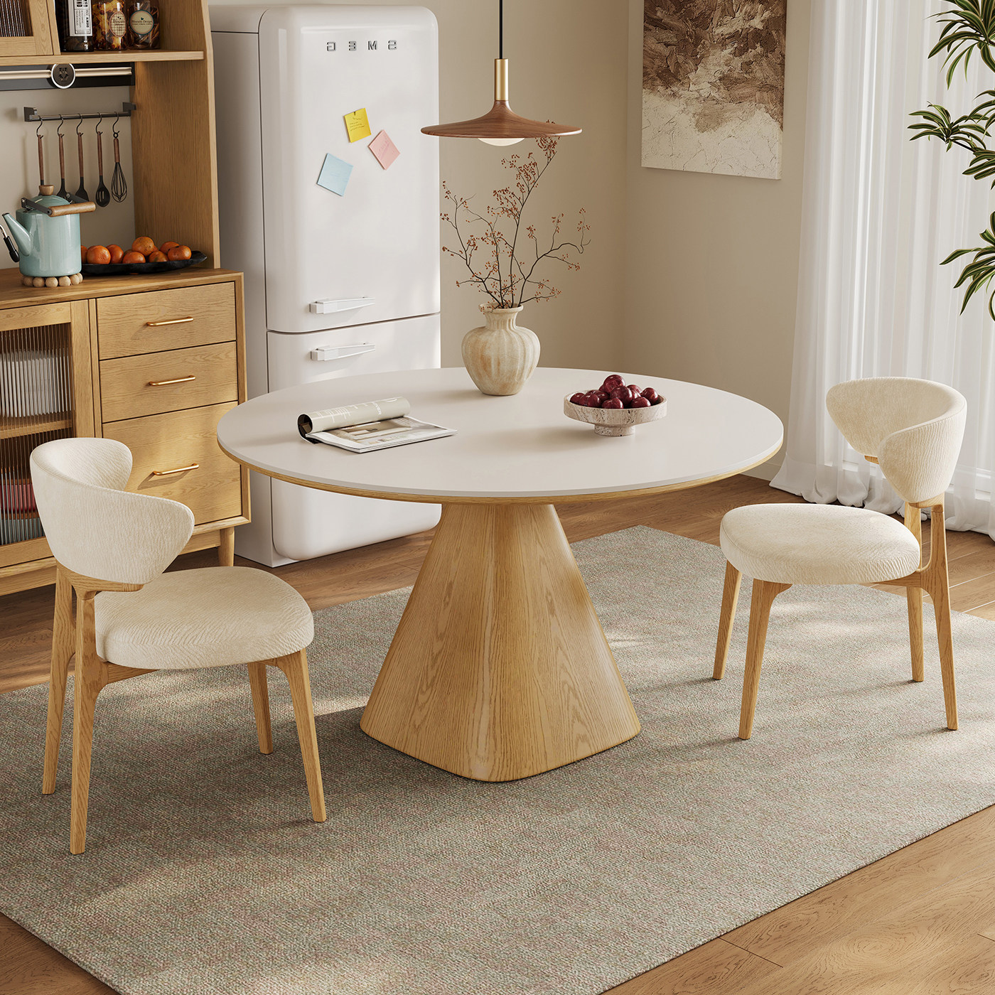 原木色圆形实木餐桌小户型带转盘奶油风新款全托家用哑光岩板餐桌