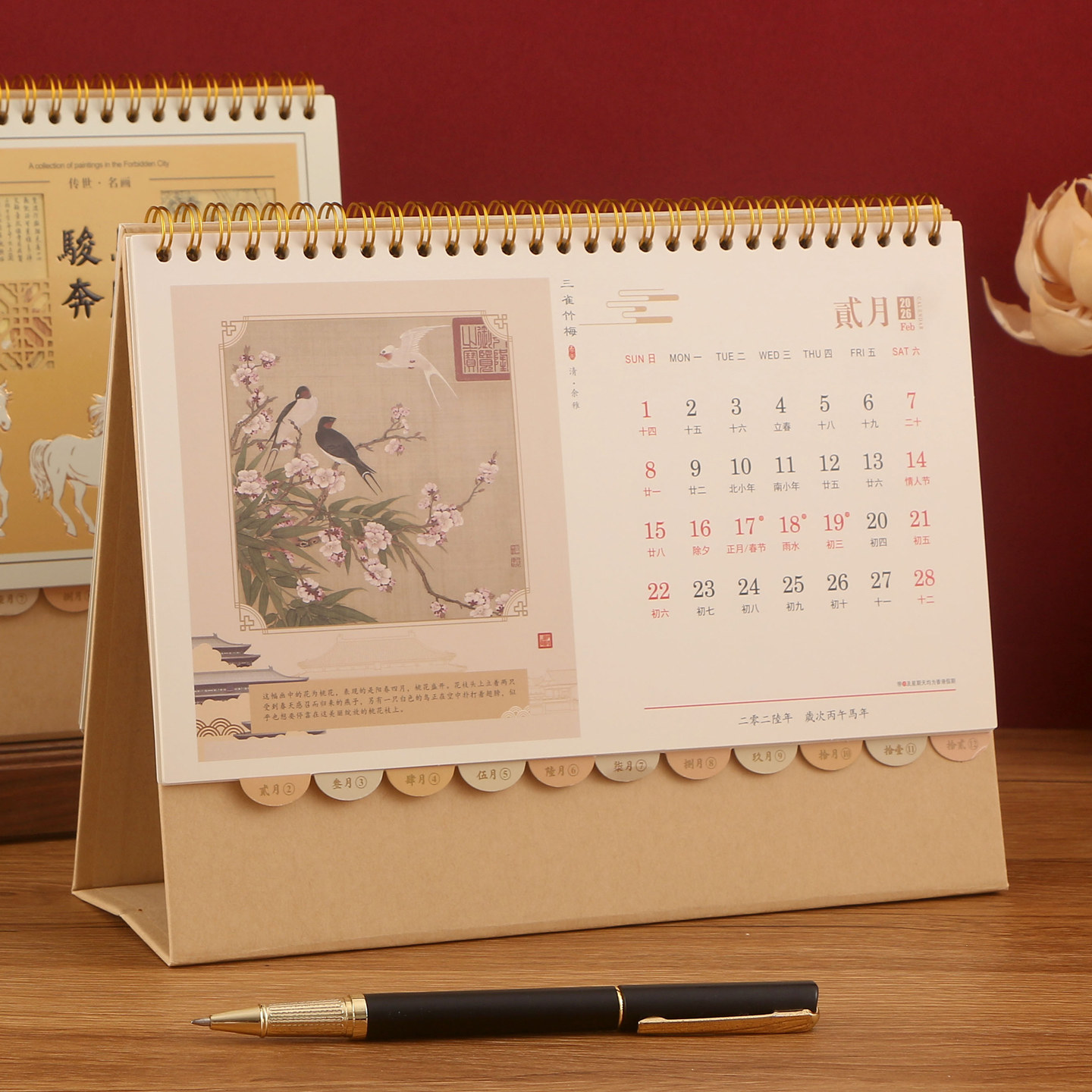 台历定制2026年新款创意办公桌面摆件工作打卡备忘日历计划本古风马年月历商务大号年历定做广告logo记事日历