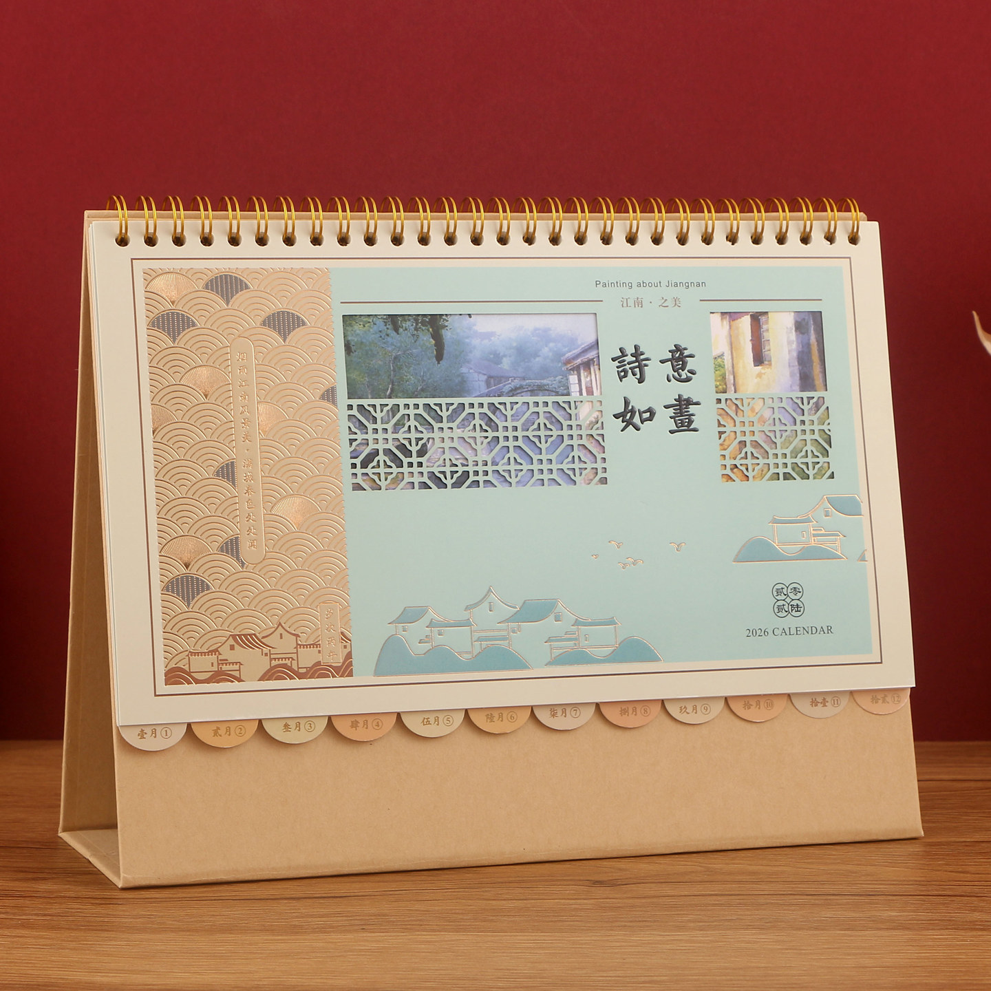 台历2026年新款日历定制logo创意简约小清新韩式办公年历个性中国风桌面摆件商务工作记事计划本订制广告月历