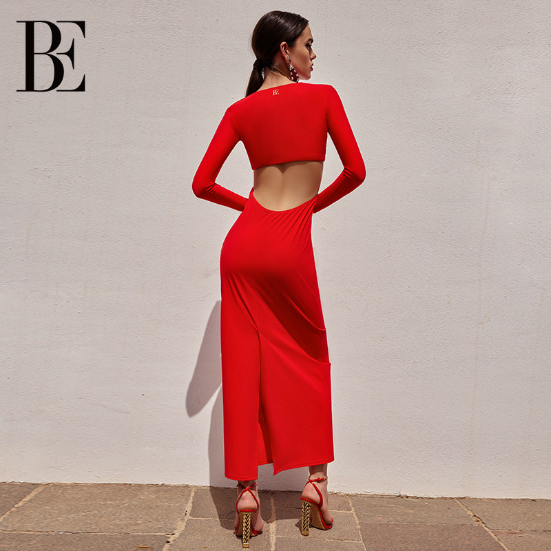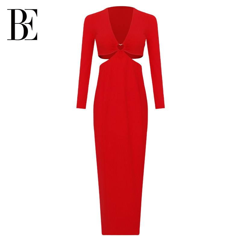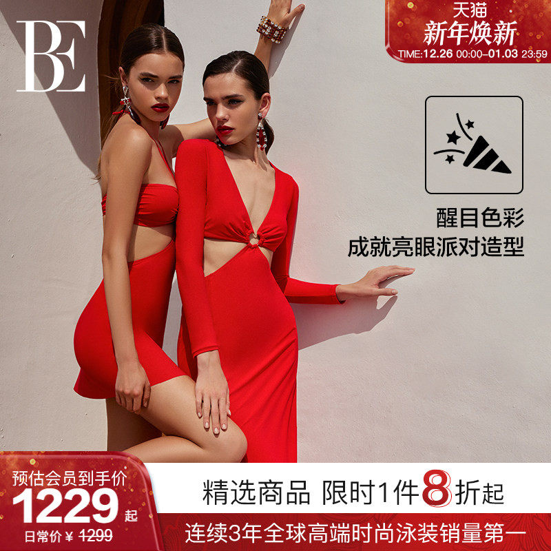 BE范德安2025 时尚系列连衣裙女士速干优雅性感深V新年礼服裙红色