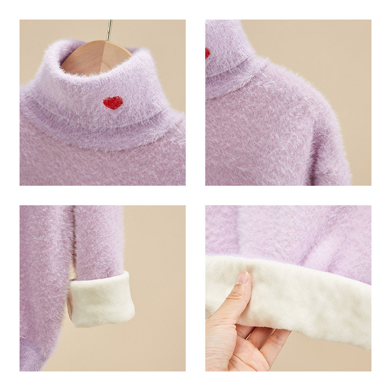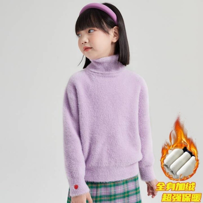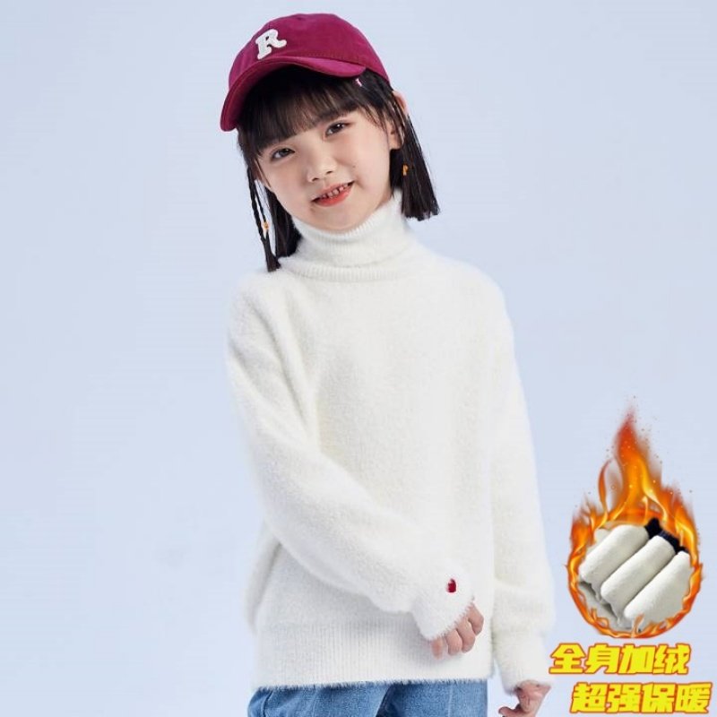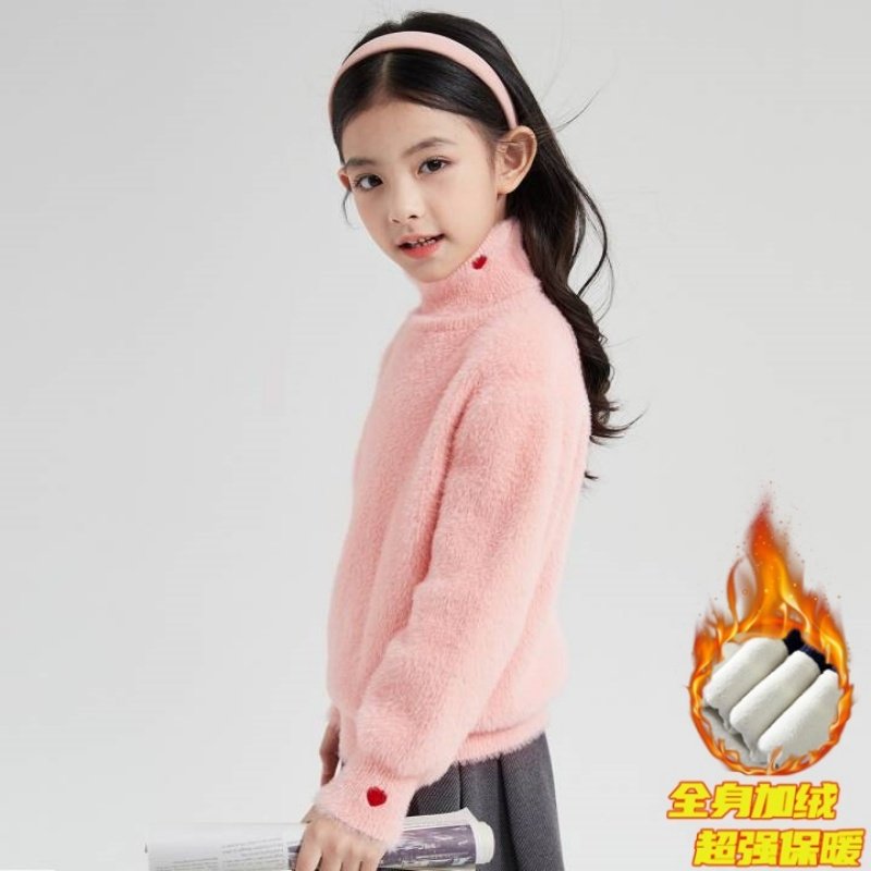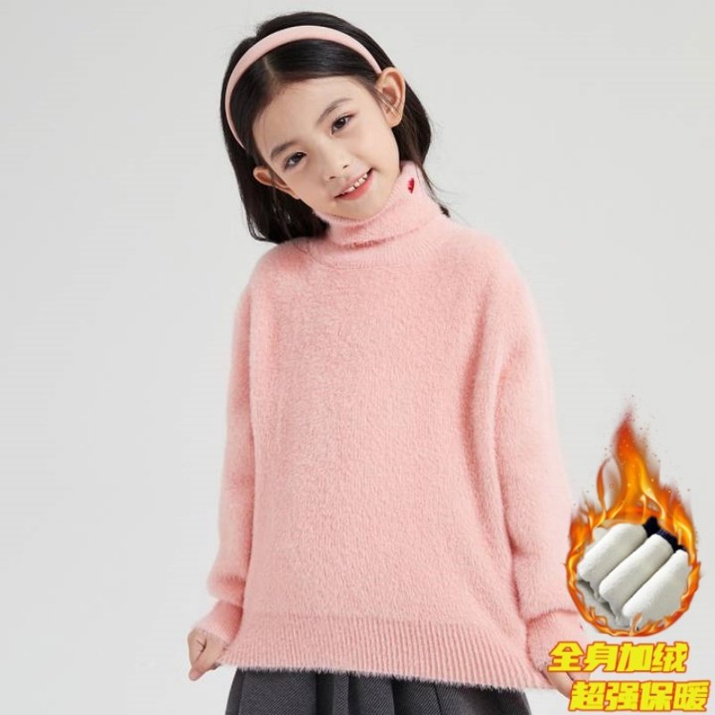 女童高翻领秋冬水貂绒加厚一体绒针织衫毛衣中大童洋气百搭打底衫