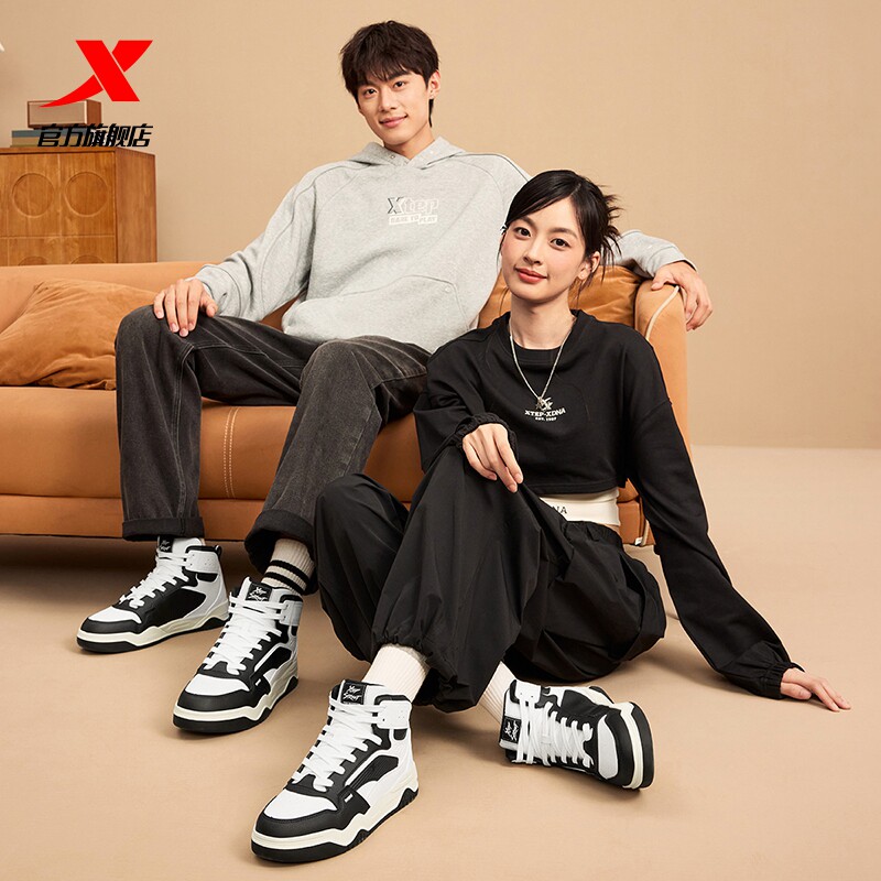 特步空军一号情侣板鞋男鞋冬季潮流休闲鞋运动鞋女鞋子厚底小白鞋
