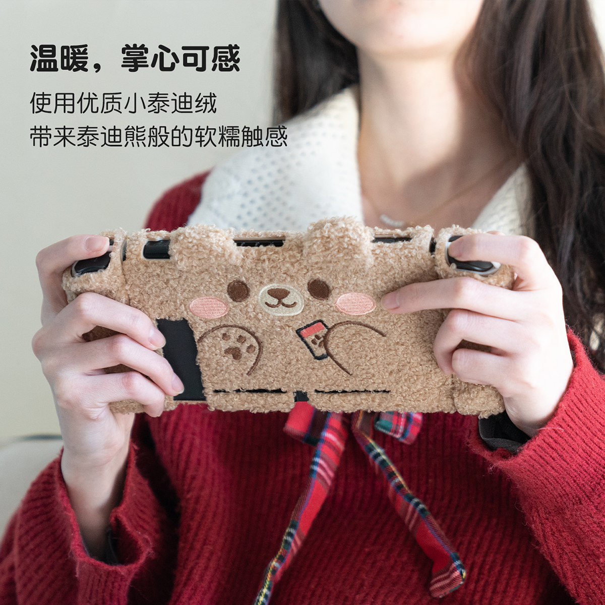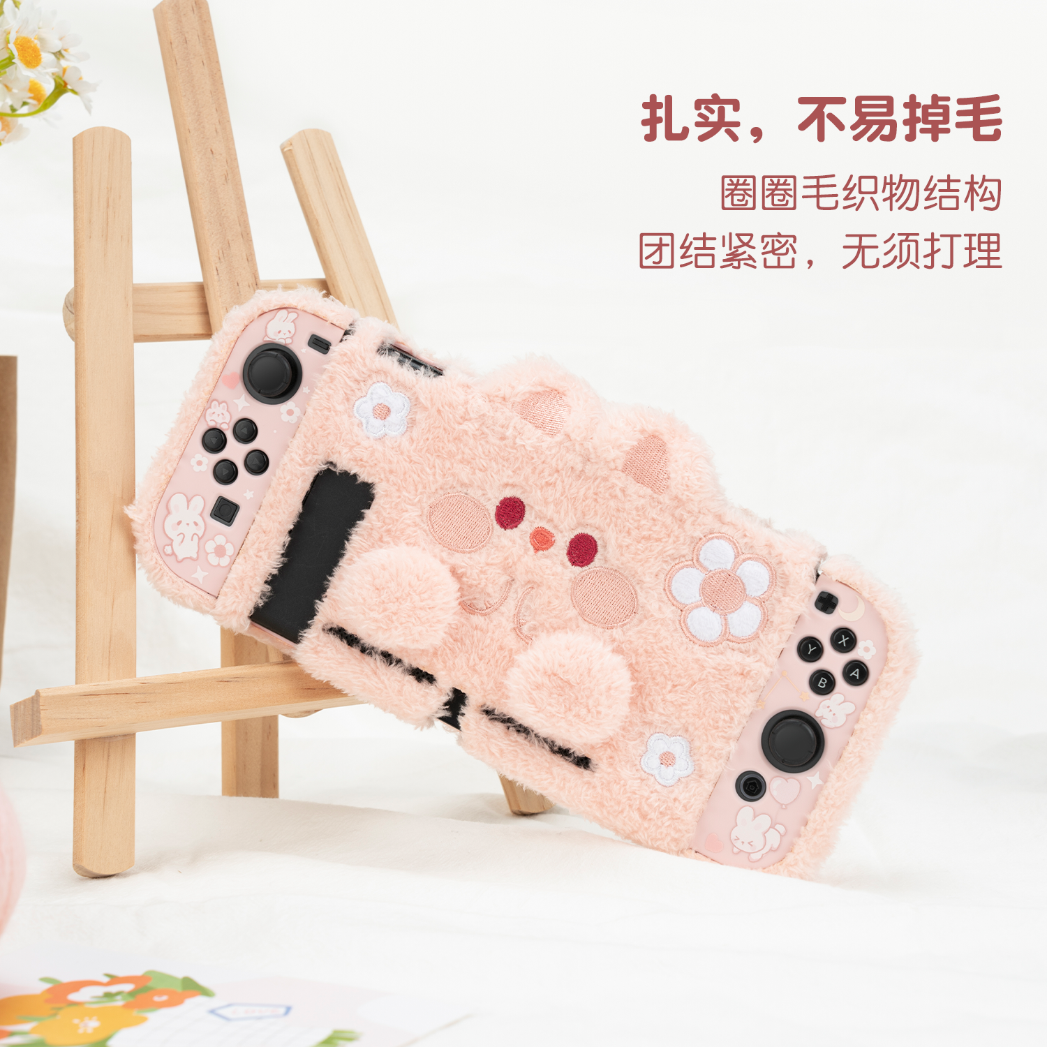极想任天堂switch毛绒保护壳硬壳ns分体式joy-con手柄套配件可爱