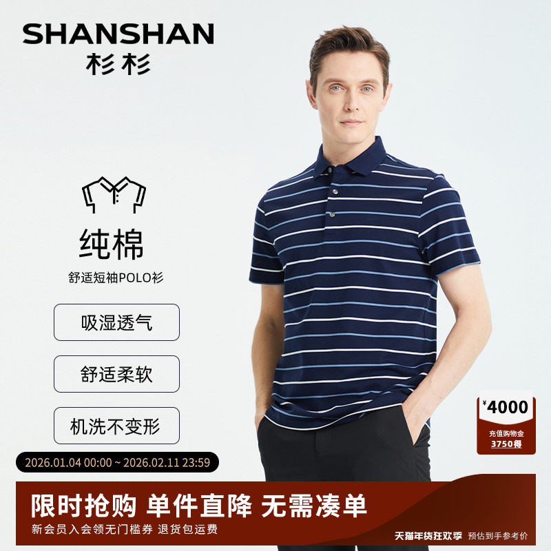 SHANSHAN杉杉官方中年男士短袖t恤纯棉爸爸夏装2025新款polo衫男