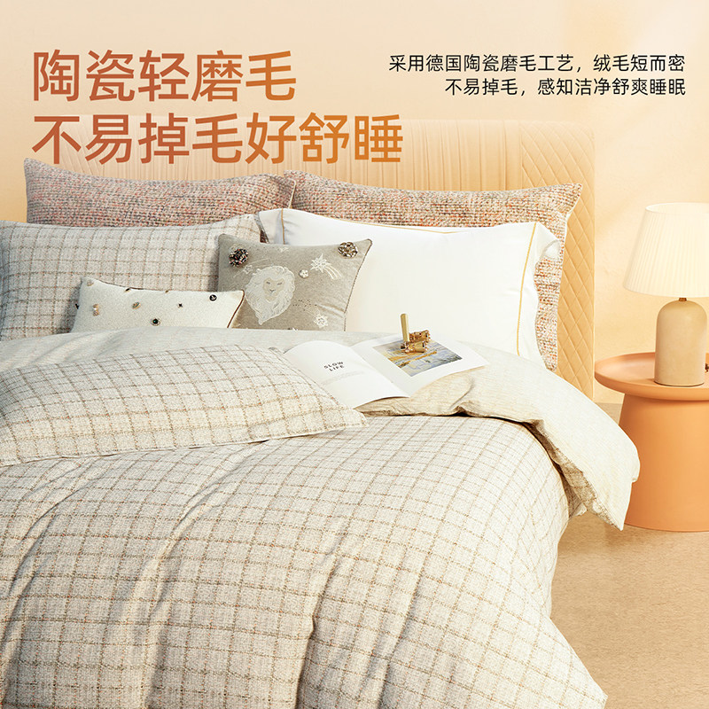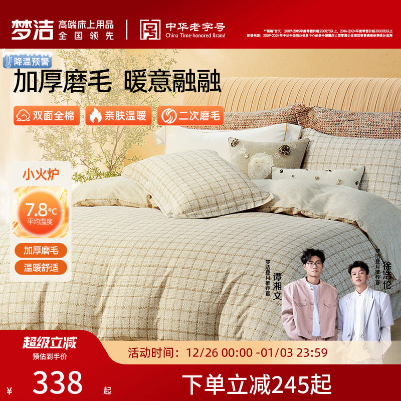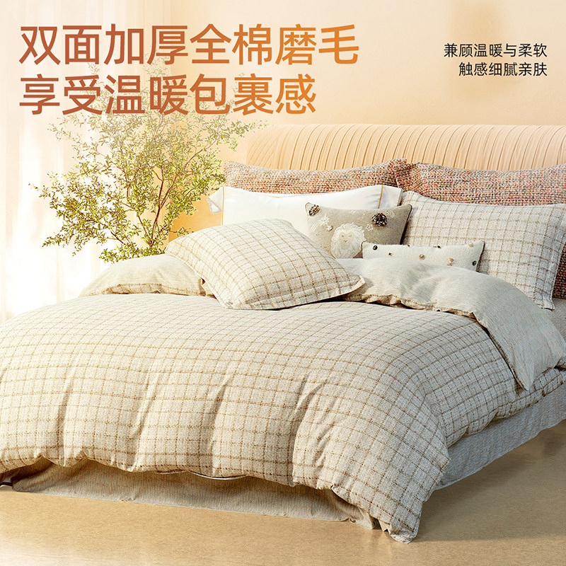 梦洁全棉磨毛四件套纯棉保暖套件床品秋冬季2025年新款床单被套