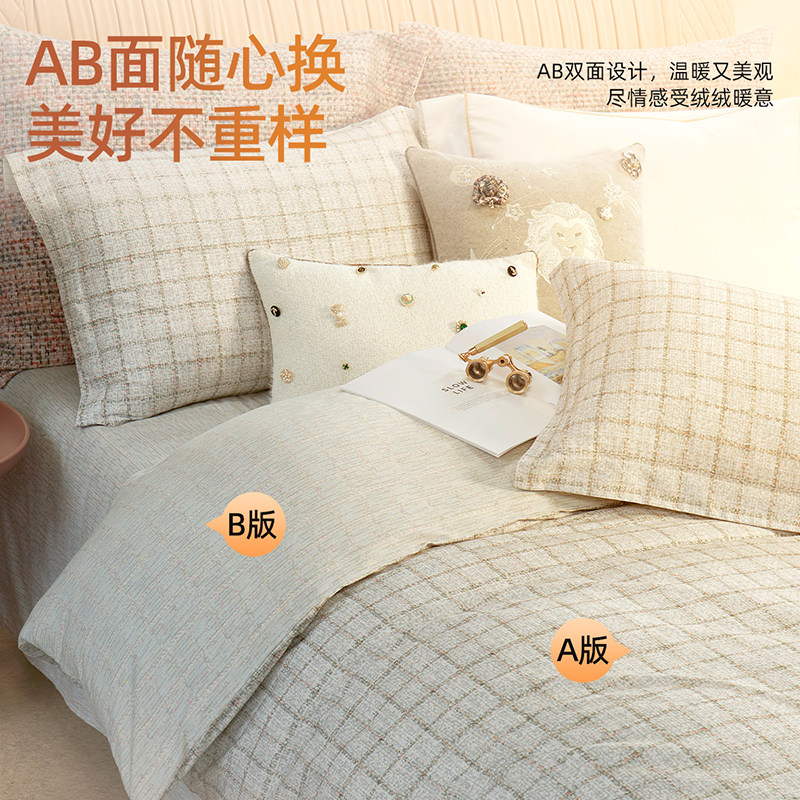 洁丽雅牛奶绒四件套冬季珊瑚绒被套床单加绒毛绒法兰绒床上三件套